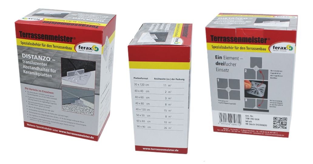 Shop » Detailansicht ferax DISTANZO - Abstandhalter für Terrassen aus Stein-/Keramikplatten - transparent mit Basisplatte