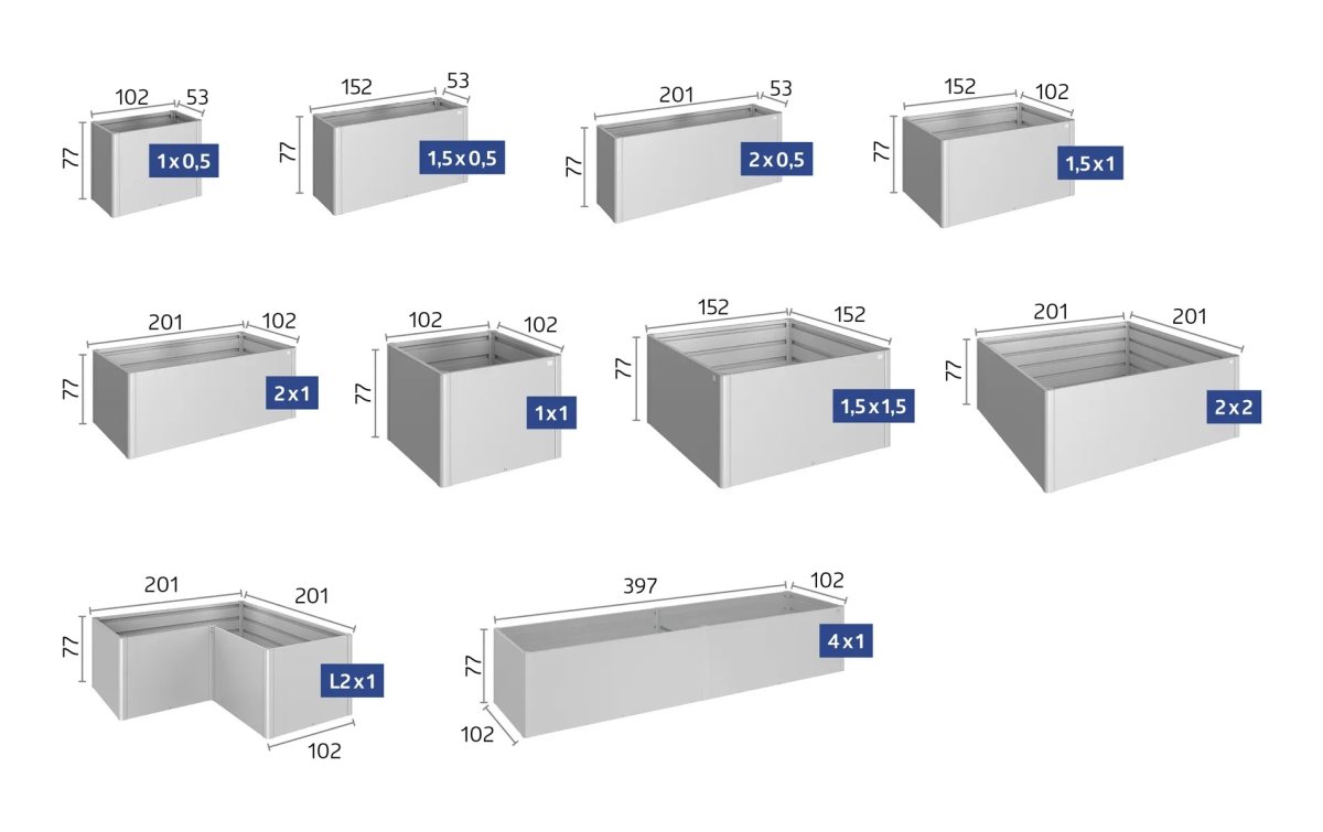 Abbildung zeigt Hochbeet 2x1 in quarzgrau-metallic.