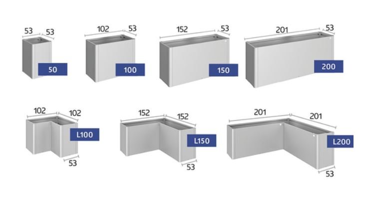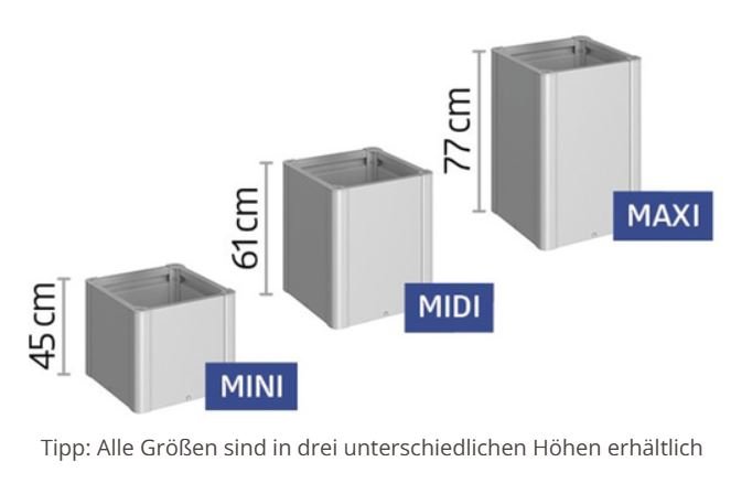 - Das Pflanzbeet MIDI ist in folgenden 7 Größen verfügbar: