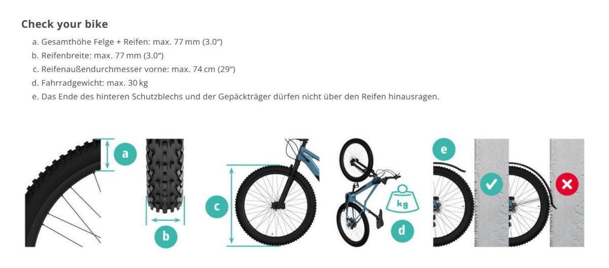 - für Fahrräder mit bis zu 29 Zoll Reifenaußendurchmesser
