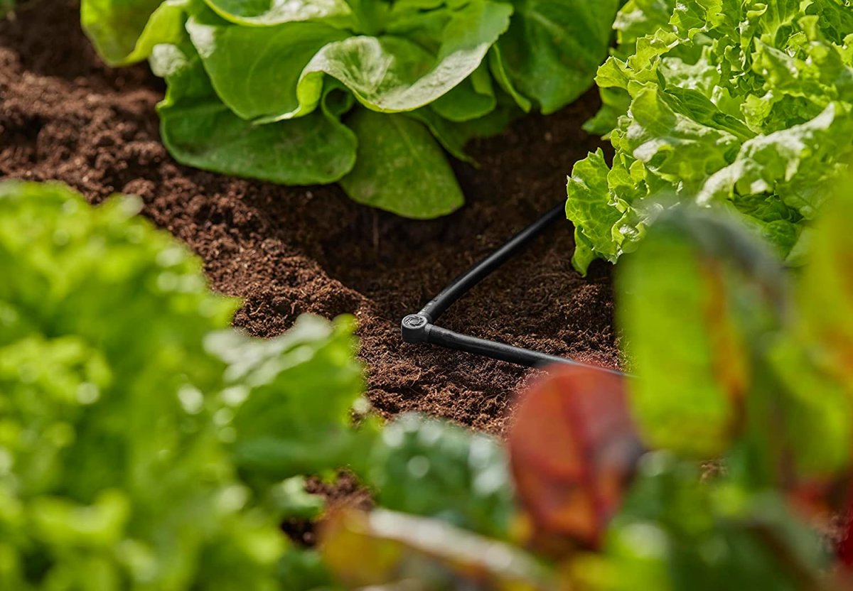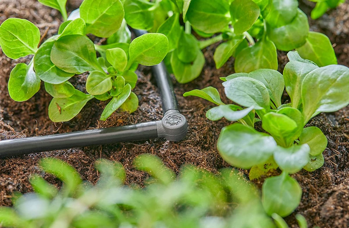 So kannst Du mit dem Micro-Drip-System alle Pflanzen im Beet erreichen. Ebenso gelingt Dir mit dem L-Stück eine knickfreie Installation über den Topfrand von Topfpflanzen hinweg.