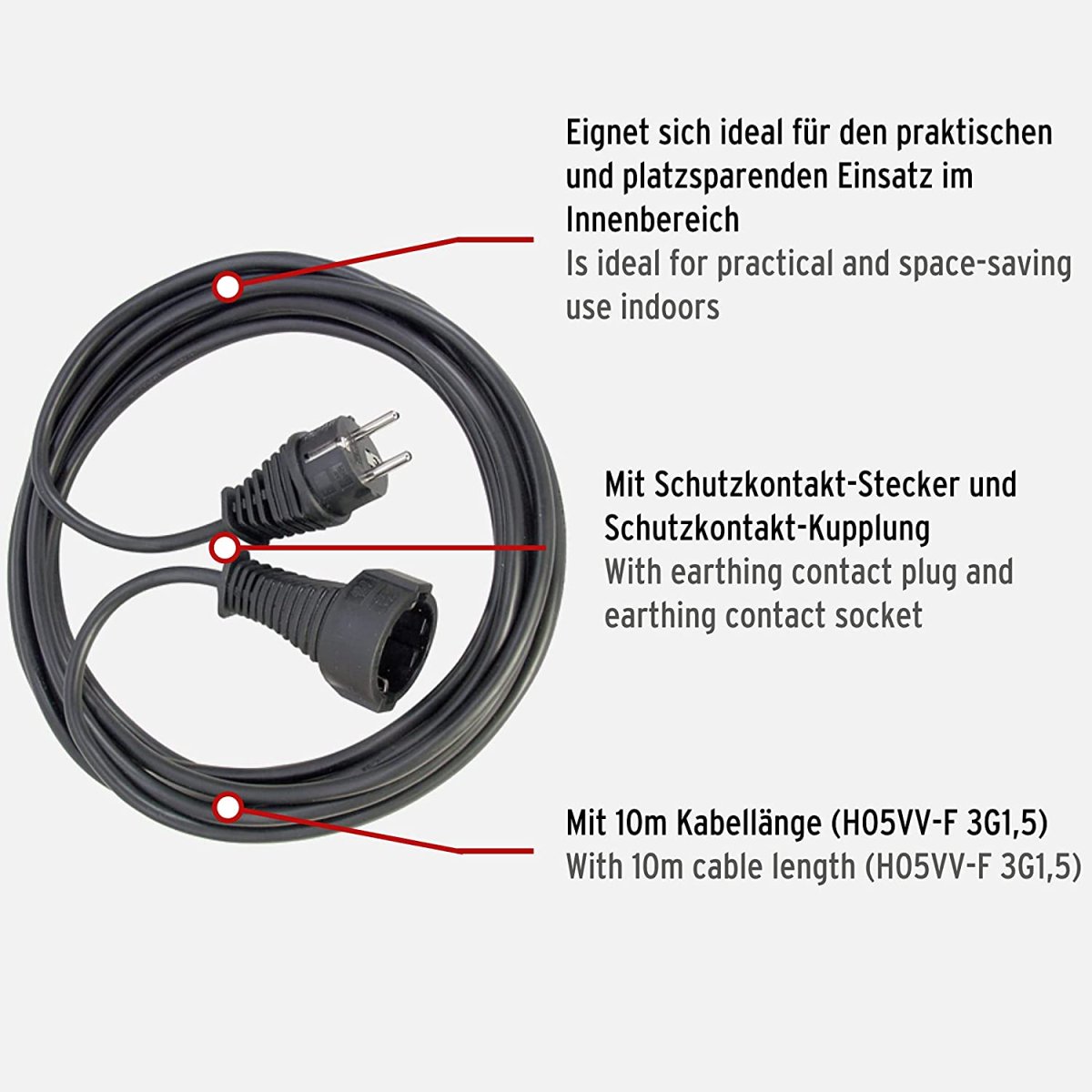 - Lieferumfang: 1x Verlängerungskabel 10m mit Schutzkontakt-Stecker und -Kupplung in der Farbe schwarz - in bester Qualität von brennenstuhl®