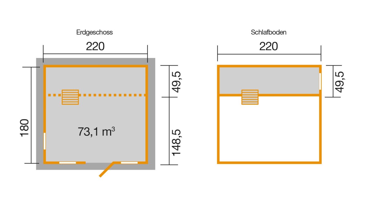 - Schlafboden: B 73,5 cm x L 177 cm, mit Leiter