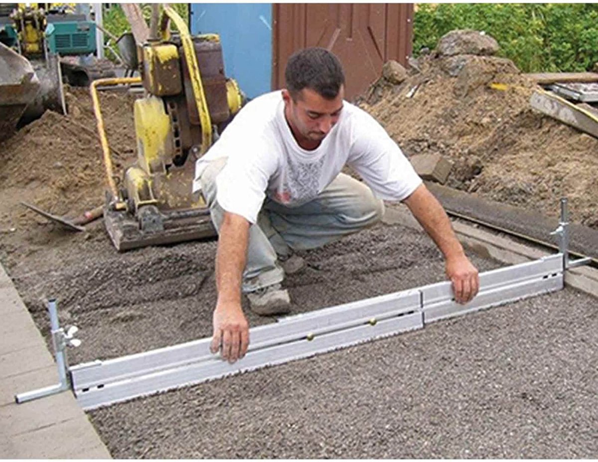 Zum Abziehen von Schüttgütern im Gala-Bau, wie Mineral, Split oder Sand zum weiteren Verlegen von Platten und Steinen.
