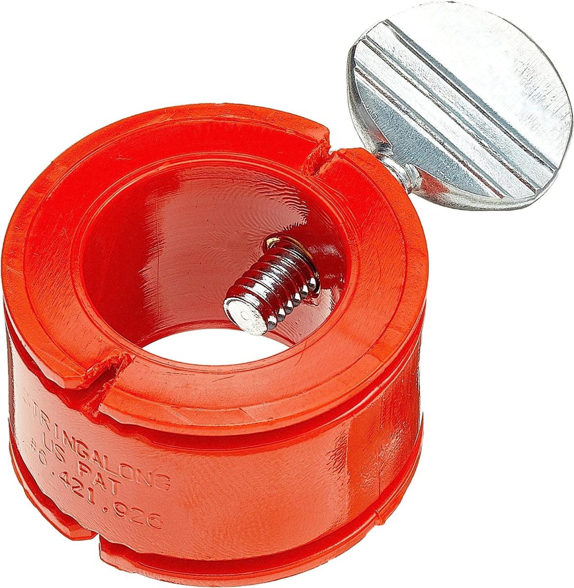 Der STRING ALONG SA wird einfach über den Erdnagel gestülpt und mit der Flügelschraube auf der gewünschten Höhe am Erdnagel fixiert. Nun kann jederzeit die Schnur um den Schnurhalter geschlungen werden und setzt sich selbst an den Verzahnungen in den beiden Rillen des SA fest.
