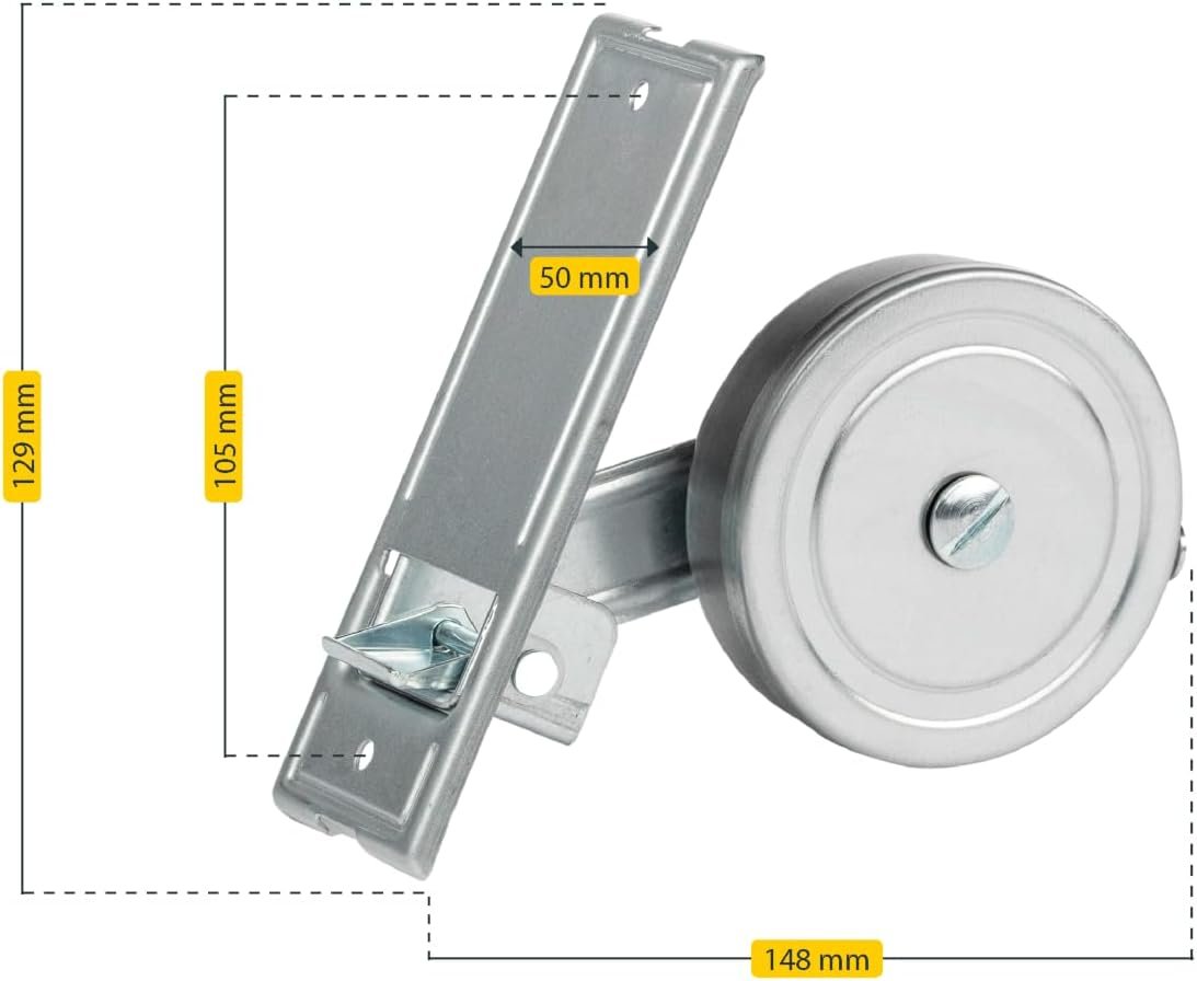 Der Gurtwickler hat den Vorteil, dass er bereits vorgespannt ist. Das erleichtert das Aufwickeln des Gurtes bei der Montage erheblich. Er ist für eine Gurtlänge von bis zu 5,0 m geeignet. Zudem ist die Position der Federdose variabel, sodass die Einbautiefe bei Bedarf angepasst werden kann.