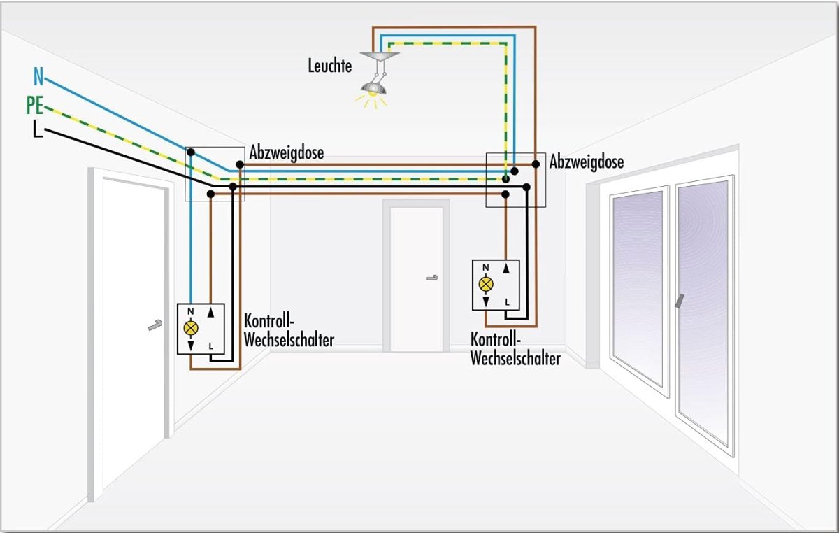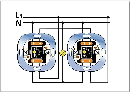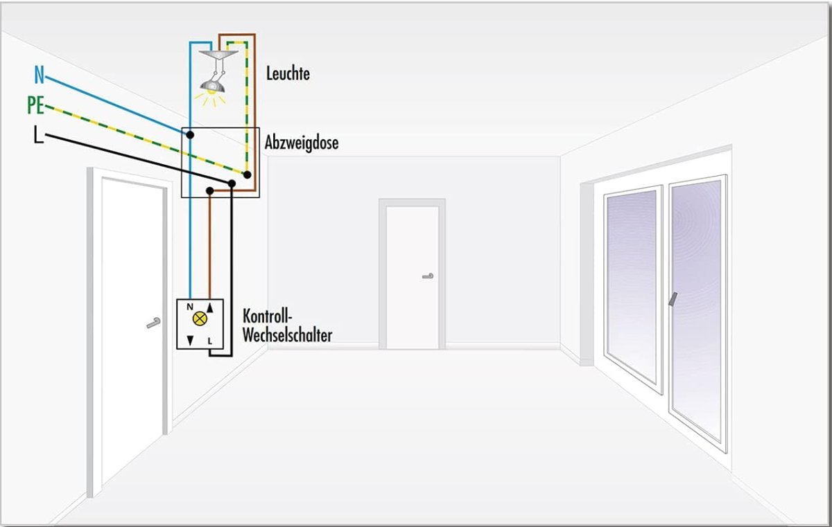 - FUNKTION - Schalter für Kontroll-Aus und Wechsel-Schaltungen, zum Ein- und Ausschalten von z.B. Leuchten von ein oder zwei Stellen aus - durch die integrierte Glimmlampe wird der Schaltzustand des Verbrauchers angezeigt