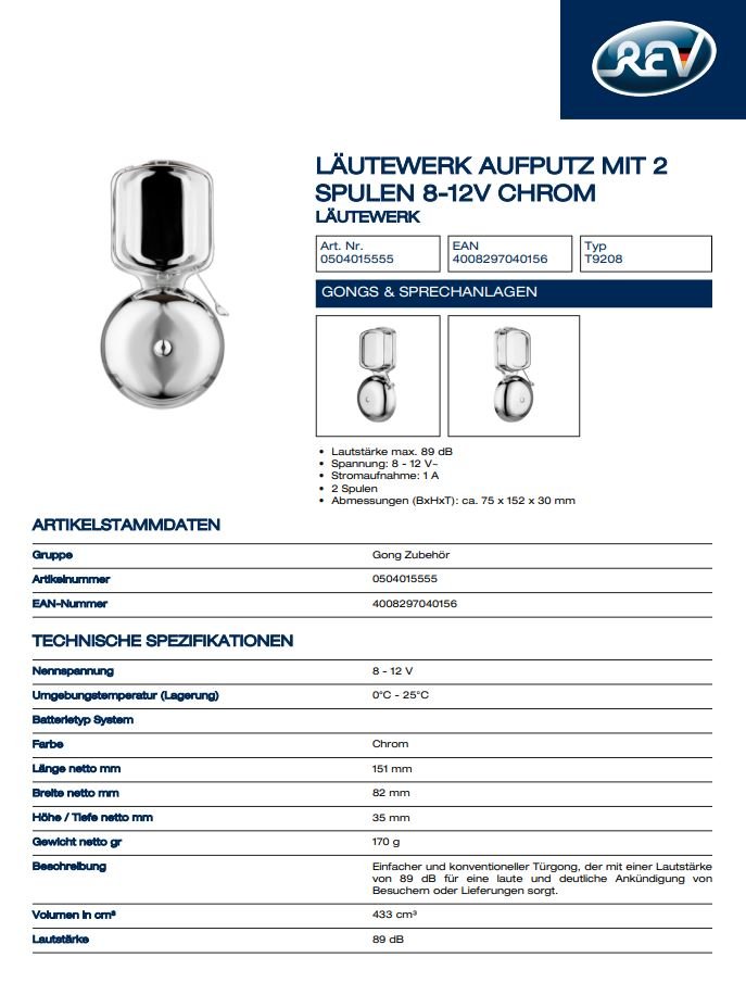 REV Läutewerk 89 DB / klassische Türklingel - Typ 9208