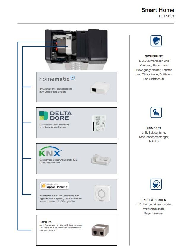 Optionale Gateways von Smart Home Systemen werden einfach über die HCP-Schnittstelle angeschlossen. - Geringer Stromverbrauch