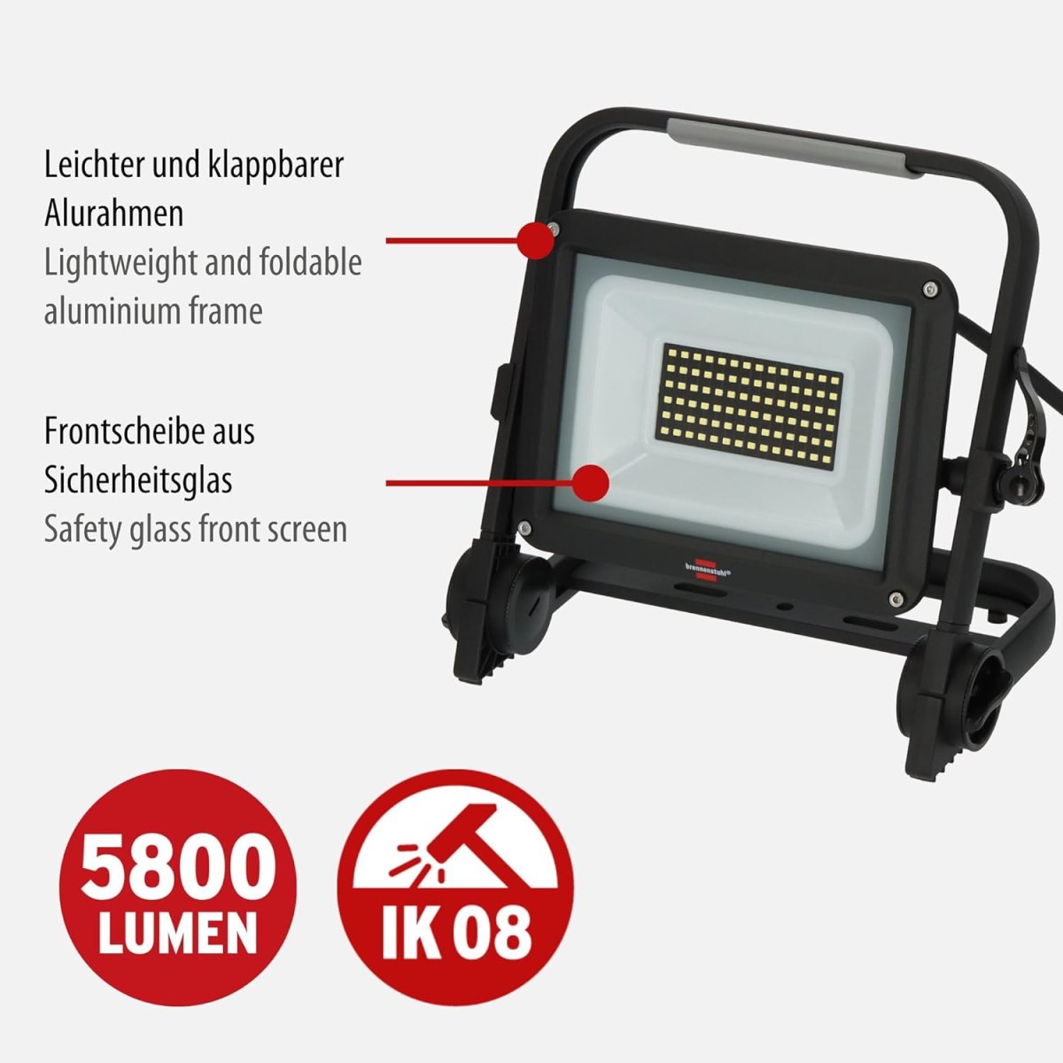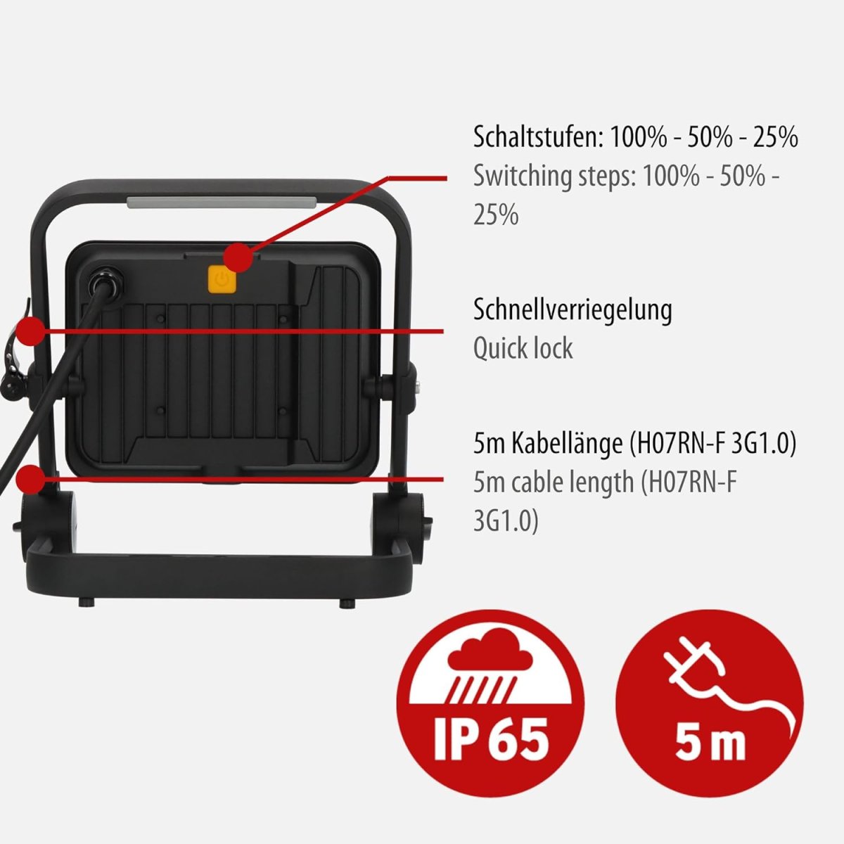 - Mobiler LED Strahler JARO mit 5m Kabellänge (H07RN-F 3G1.0) und einer Frontscheibe aus Sicherheitsglas