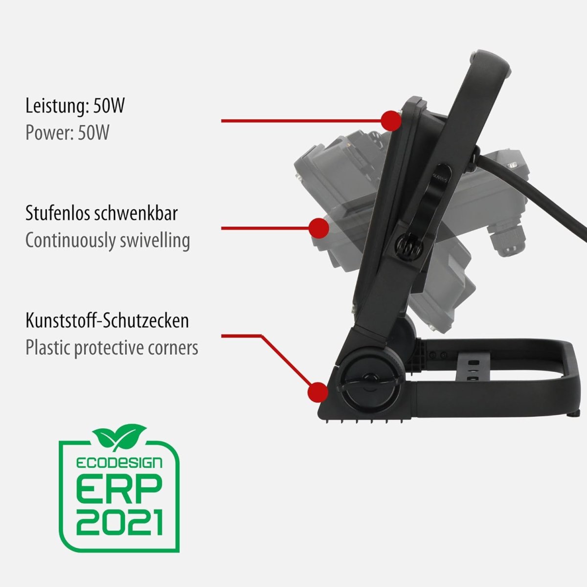 - Extrem kompakter und leichter LED Bauscheinwerfer mit einer Leistung von 50W eignet sich bestens für den Einsatz im Außenbereich dank der Schutzart IP65 (staubdicht und strahlwassergeschützt)
