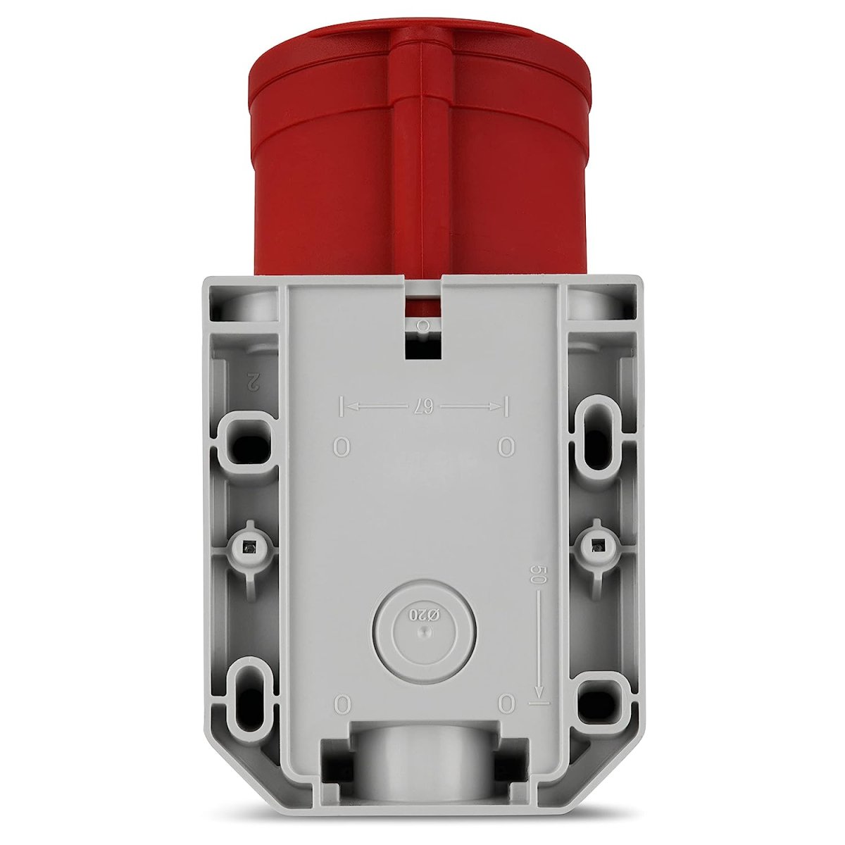 Die solide 5-polige CEE Wandsteckdose für die spezielle Anwendung in Handwerk, Industrie und Landwirtschaft bietet ein stabiles Gehäuse aus hochwertigem Polyamid.