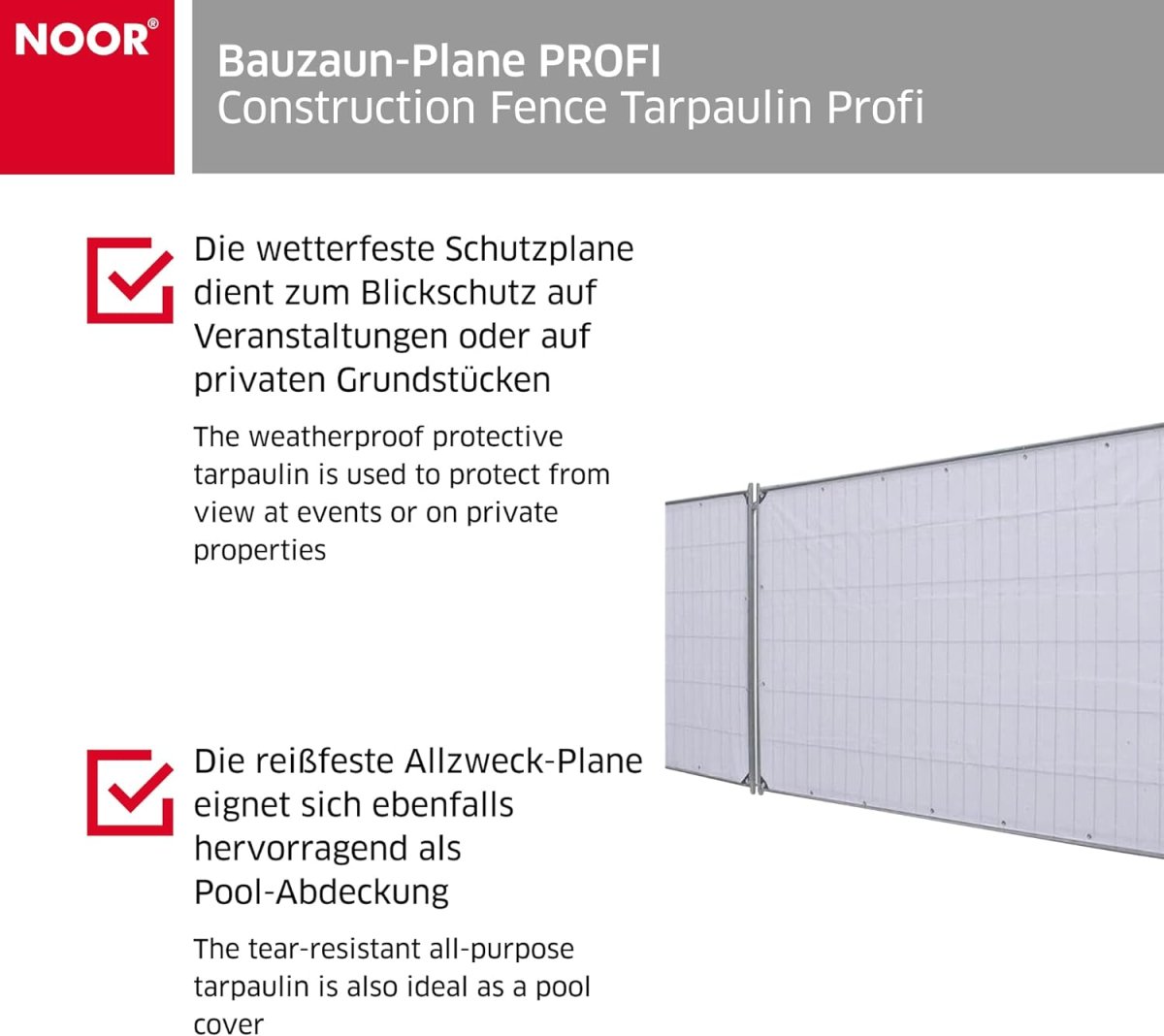 Besonders geeignet zum Sichtschutz an Baustellen und Veranstaltungen.