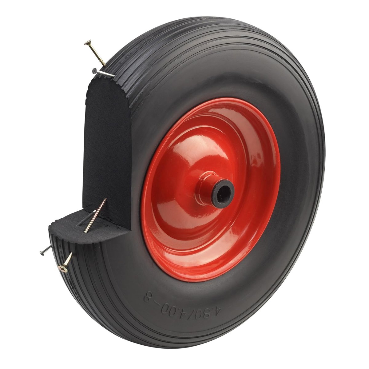 Ersparen Sie sich das das lästige Aufpumpen oder Flicken Ihres Schubkarrenrads. Das pannensichere Rad aus geschäumtem Polyurethan hat den großen Vorteil, dass kein Luftverlust auftreten kann. Aufgrund seiner Unempfindlichkeit, sowohl gegen äußere Einflüsse, wie Sonneneinstrahlung, als auch gegen scharfkantige Gegenstände, wie Nägel, Scherben oder Split, weist das Material eine besonders lange Lebensdauer auf. Selbst nach längeren Standzeiten ist eine Schubkarre mit diesem Rad sofort einsetzbar.