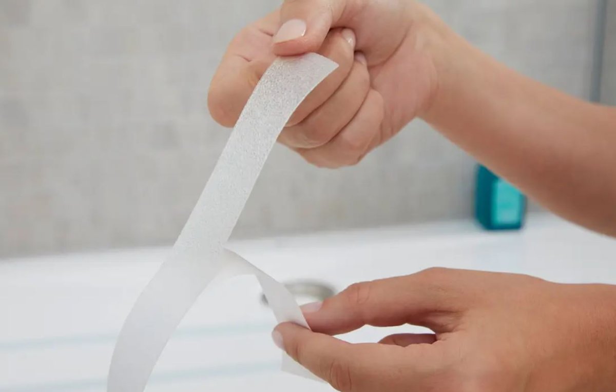 Die Klebmasse aus Acryl verfügt über eine starke Klebkraft und sorgt für einen sicheren Halt, z.B. in Badewannen oder Duschen. Da das Antirutschband transparent ist, fügt es sich in jedes Badezimmerdesign nahtlos ein. Außerdem wurde ein Oberflächenmaterial ausgewählt, das sich auch unter nackten Füßen gut anfühlt.