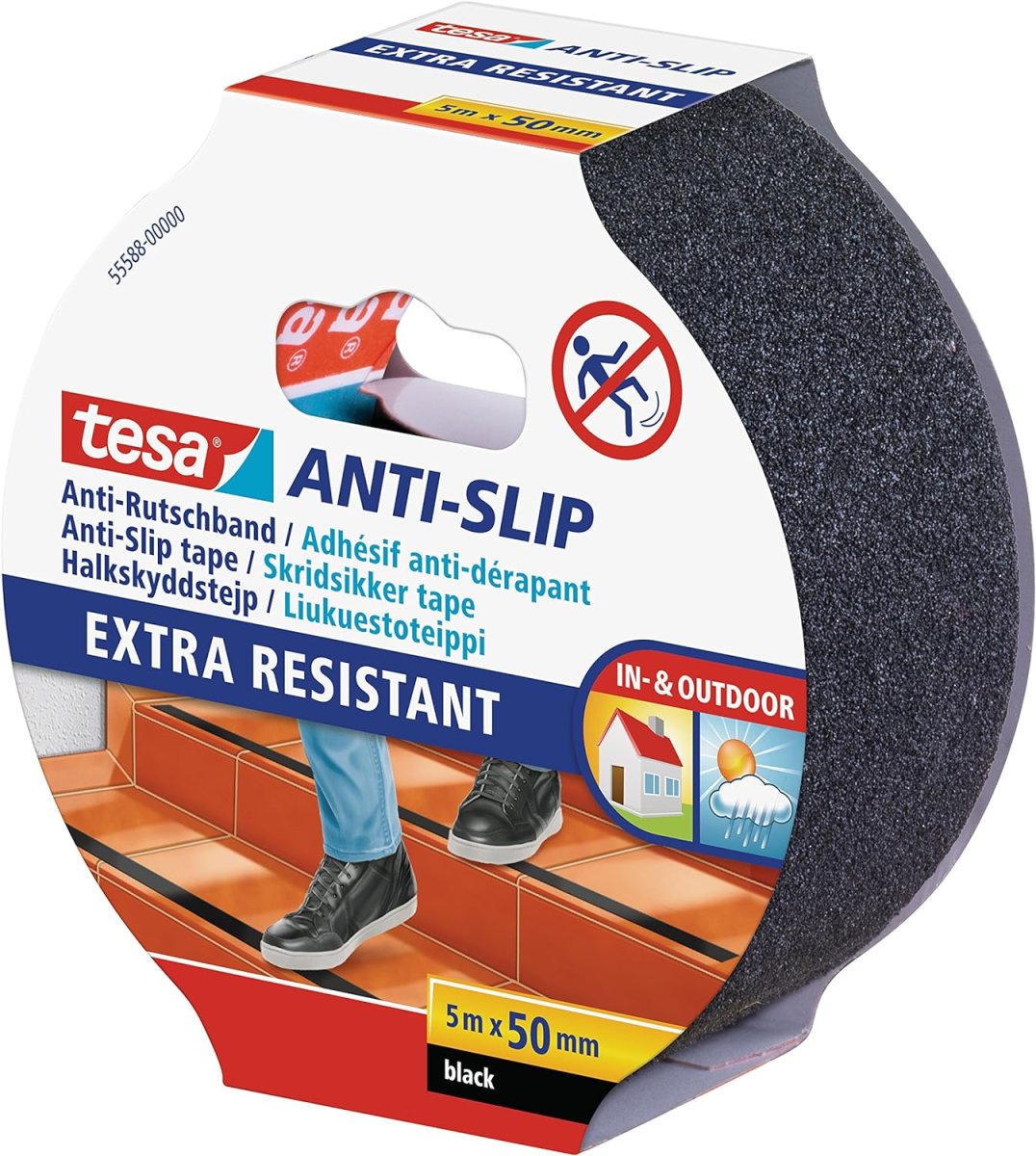 Das robuste tesa® Anti-Rutschband ist die klebstarke Lösung, um die Rutschgefahr auf Treppen, Leitern und anderen glatten Böden drastisch zu reduzieren.