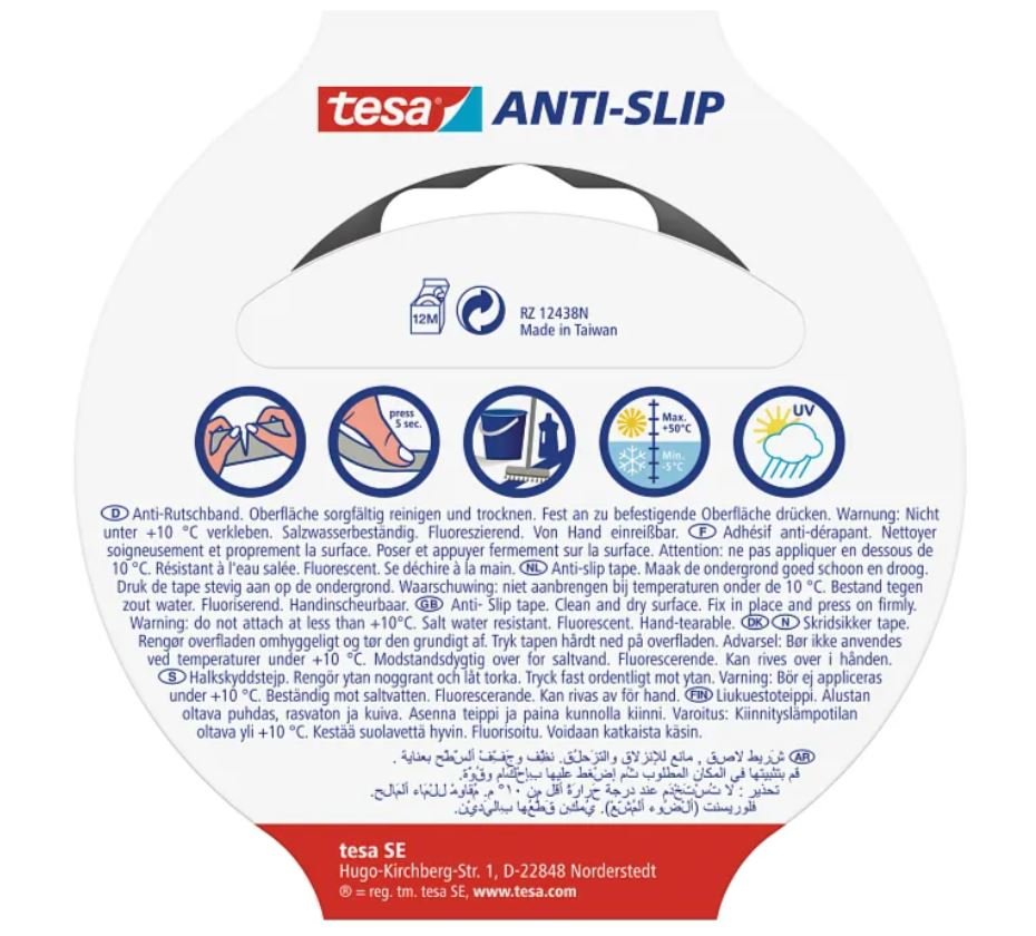 Aufgrund seiner Beständigkeit gegen UV-Licht, extreme Temperaturen und Reinigungsmittel kann das Anti-Rutschband im Innen- und Außenbereich verwendet werden. Außerdem ist es wasserfest und kann daher sogar auf Booten und Yachten für einen sicheren Tritt sorgen. Sie können das Anti-Rutschband bequem per Hand einreißen.