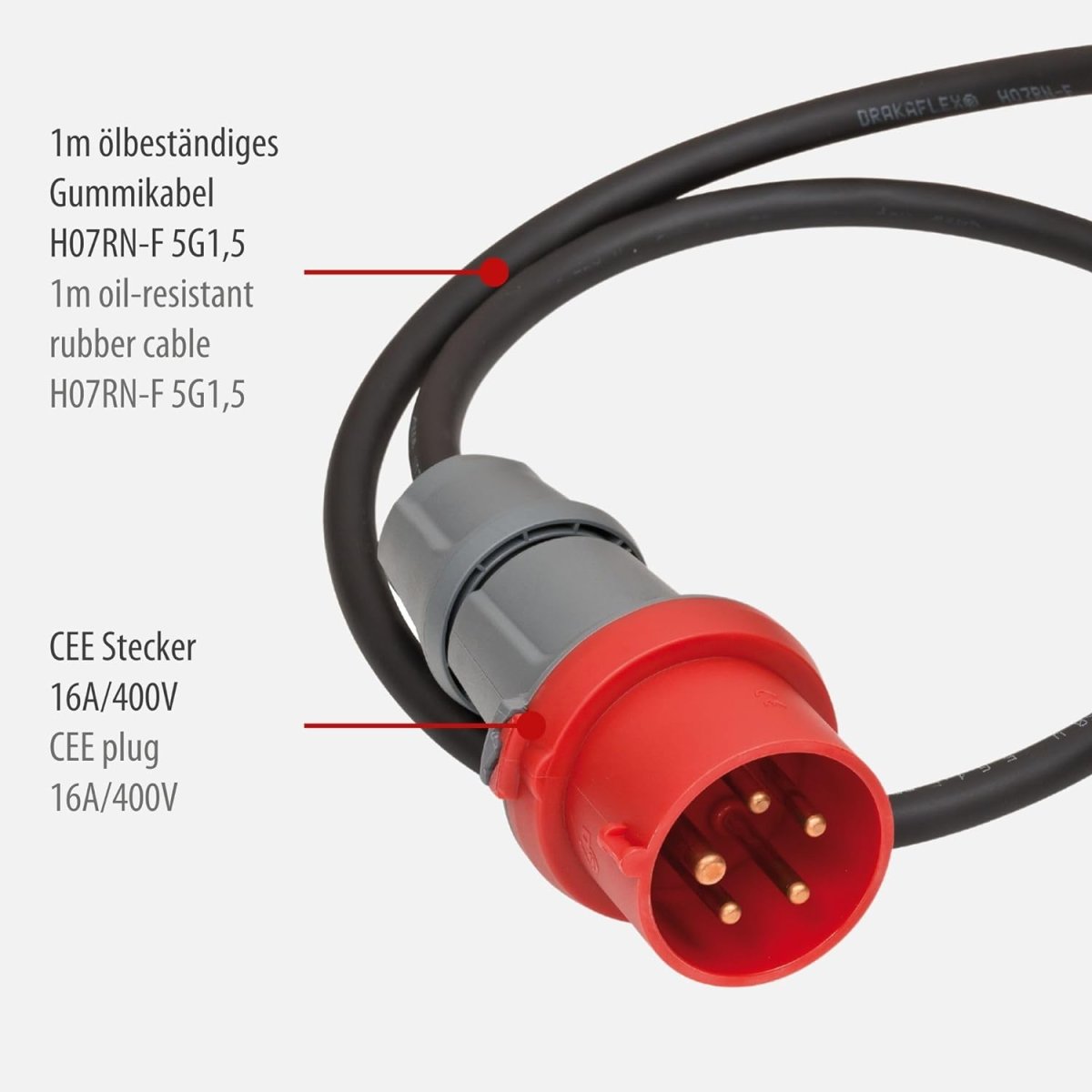 - Stecker: CEE 400 V/16 A 5-polig/-pin