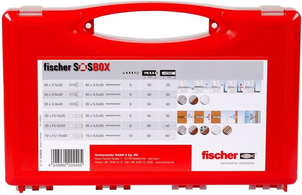 Shop » Detailansicht fischer SOS-Box Dübel S + FU + Schrauben - 360 teilig
