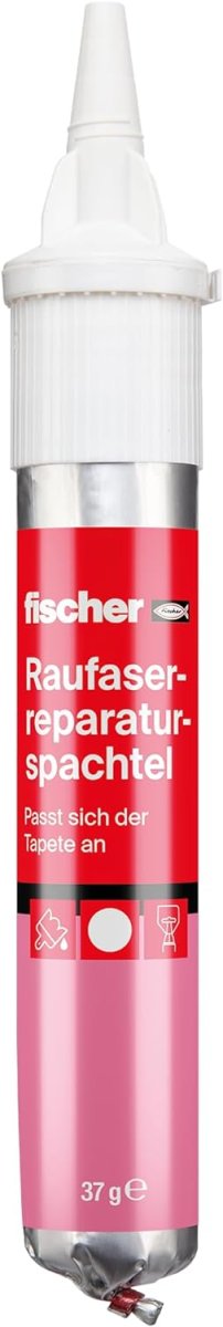 Mit dem fischer Raufaser Reparaturspachtel ist dies mit einem Handgriff binnen Sekunden zu entfernen. Dank der Raufaserkörnung und der altweißen Farbgebung ist in den meisten Fällen kein Streichen mehr nötig. Sollte die Farbgebung nicht die richtige sein, ist die Reparaturmasse natürlich überstreichbar.