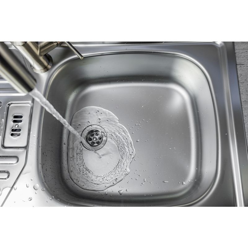 Der neue MELLERUD Abfluss Frei Kraftreiniger Aktivchlor eignet sich hervorragend zur Befreiung von verstopften Abflüssen im Küchenbereich.