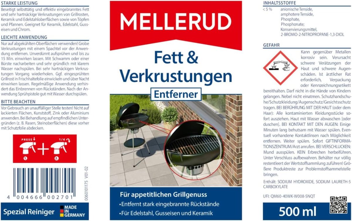 Wer kennt es nicht? Ein schöner Grillabend geht zu Ende, die Gäste sind glücklich und zufrieden, doch den Hausherren plagen erste Sorgen, wie er denn nun seinen Grill wieder sauber bekommt. Genau hierfür haben wir den MELLERUD Fett & Verkrustungen Entferner für Sie entwickelt.