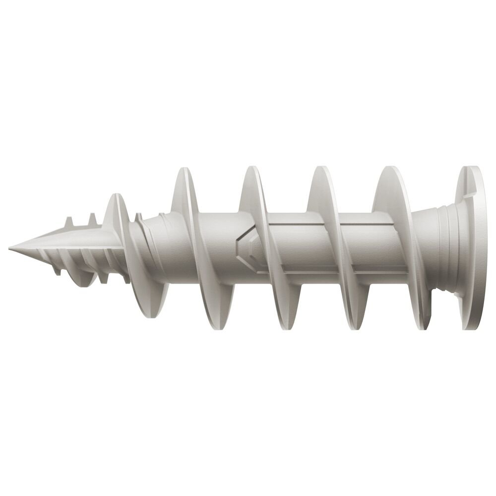 - Durch die spezielle Spitzengeometrie schraubt sich der Dübel ohne Vorbohren durch Putzstärken bis zu 10 mm, was eine schnelle Verarbeitung ermöglicht.