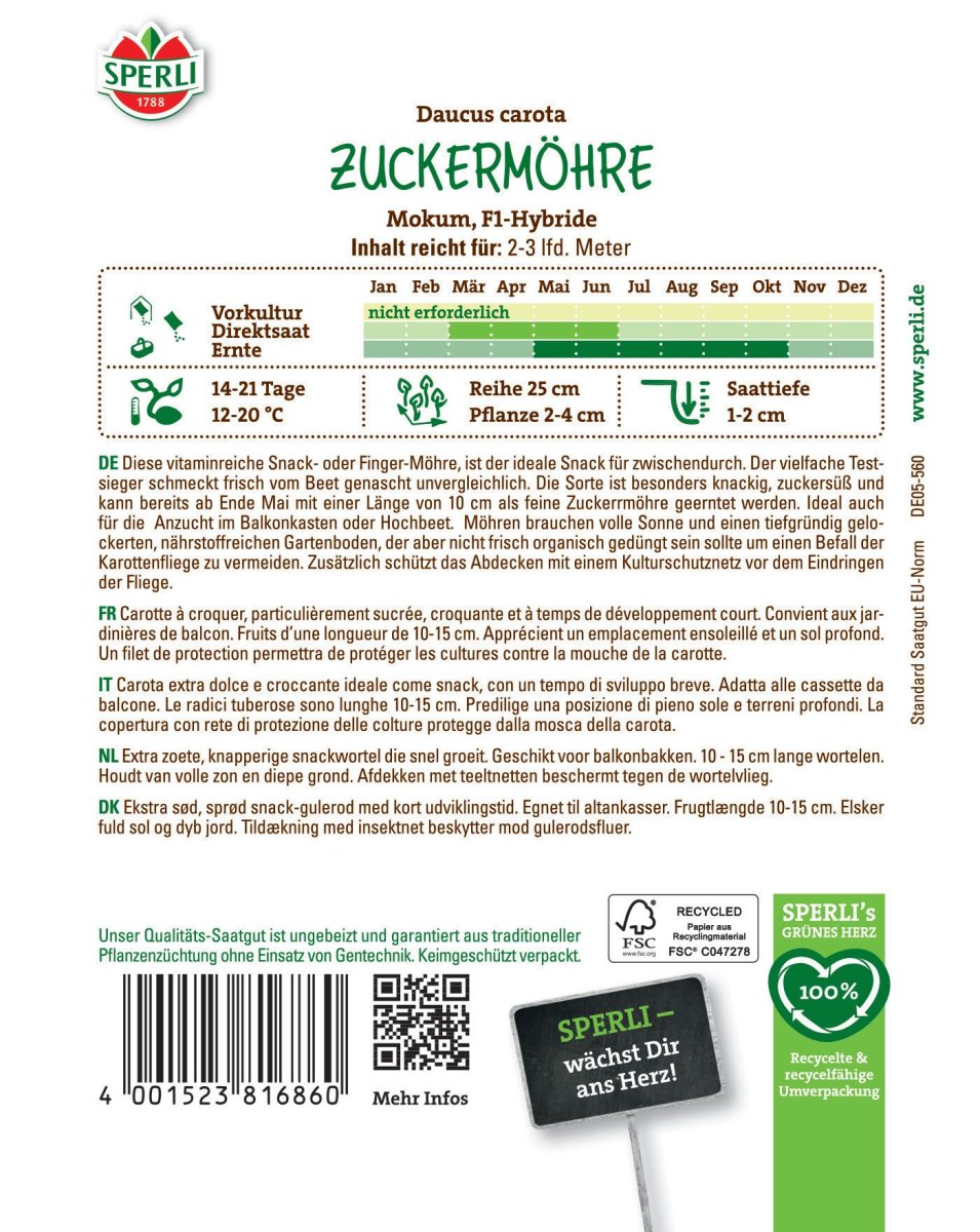 Gemüsesamen - Zuckersüße Snackmöhre - Art.Nr.: 81686 Artikel-Nr.: 86001031 Hersteller: SPERLI GmbH