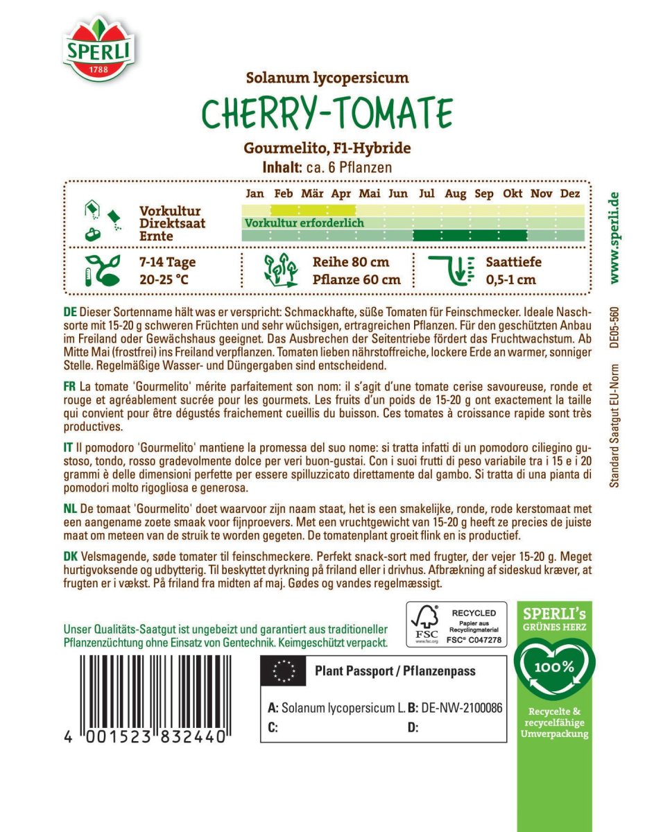 Gemüsesamen - Süße Früchte, ideale Naschsorte - Art.Nr.: 83244 Artikel-Nr.: 86001074 Hersteller: SPERLI GmbH
