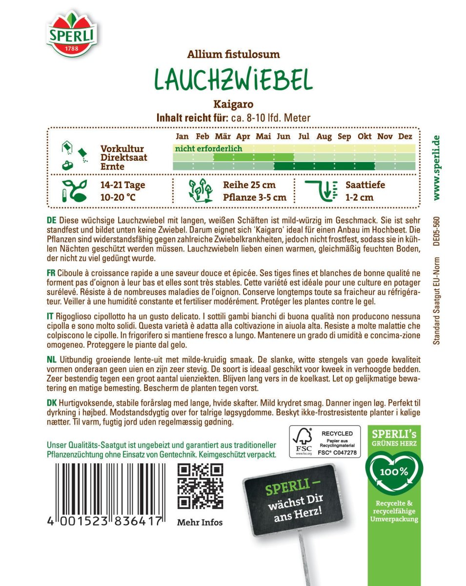 Gemüsesamen - Wüchsige Pflanzen ohne Zwiebelbildung, mild-würzig - Art.Nr.: 83641 Artikel-Nr.: 86001091 Hersteller: SPERLI GmbH