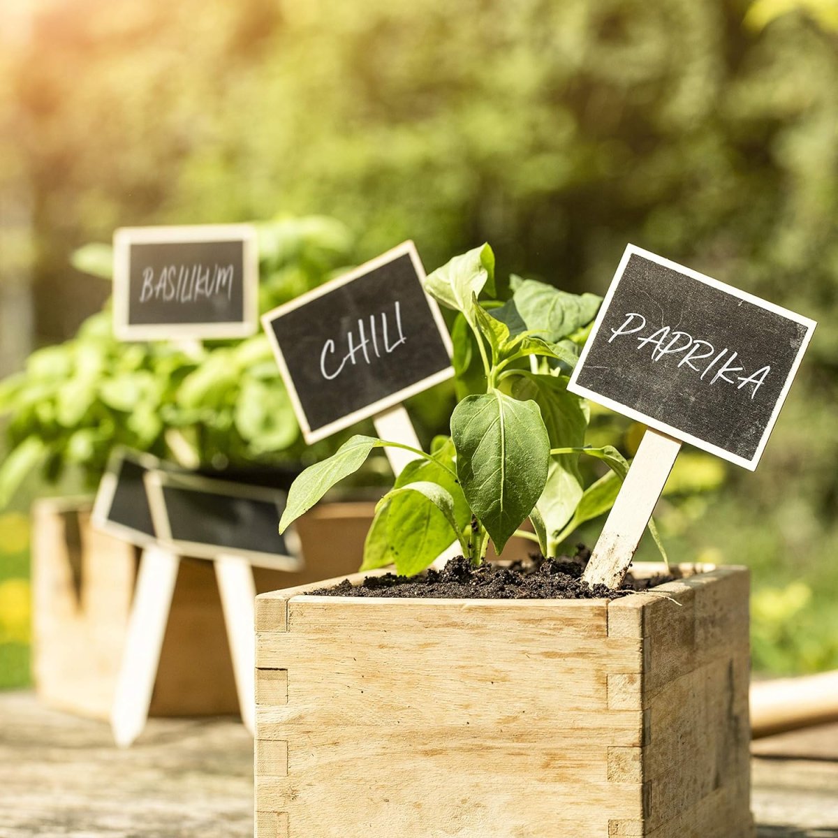 - aus Sperrholz gefertigte Beschriftungsschilder für den Gemüse- oder Kräutergarten
