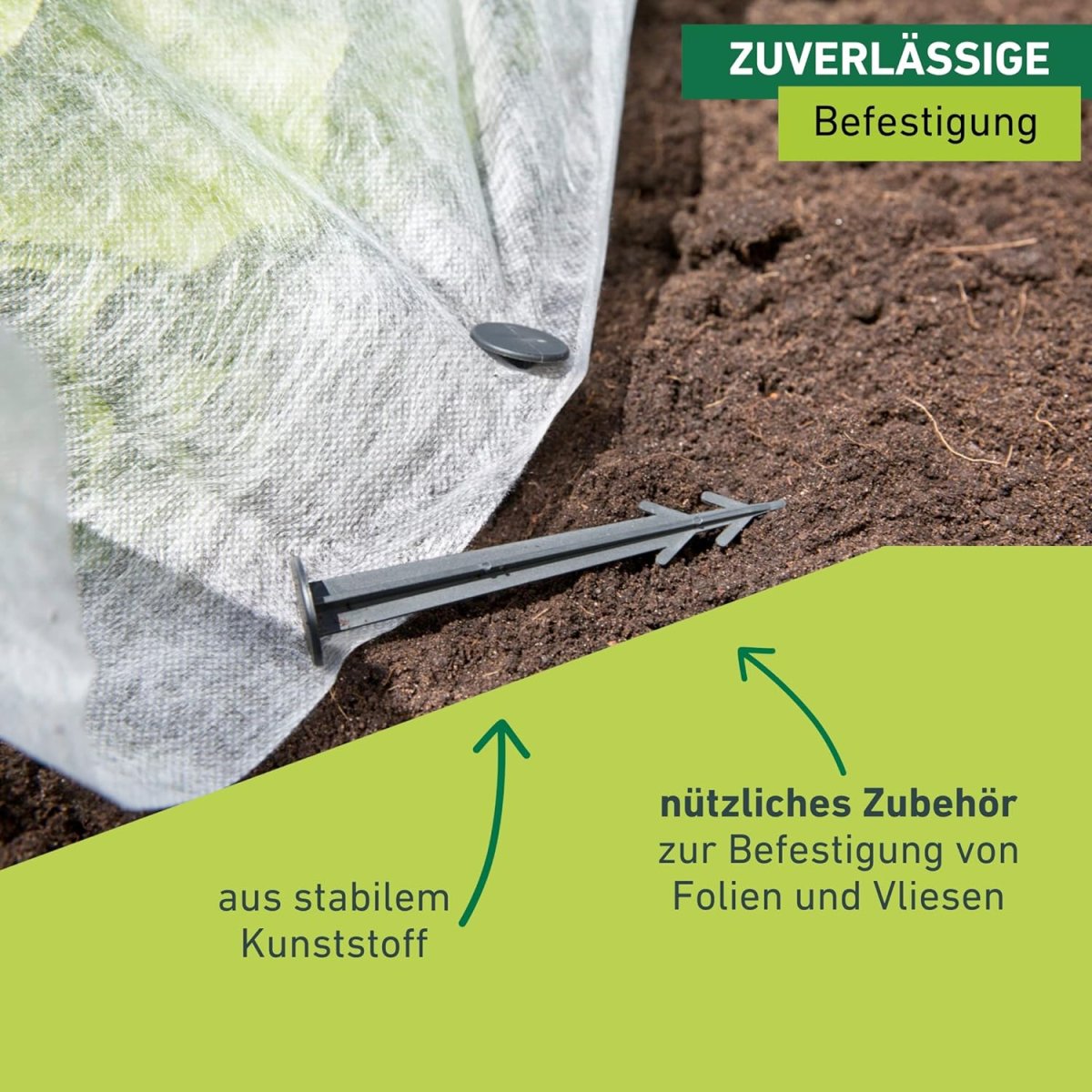 - EINFACHE ANWENDUNG - Bodenanker durch das Vlies/die Folie in die Erde drücken