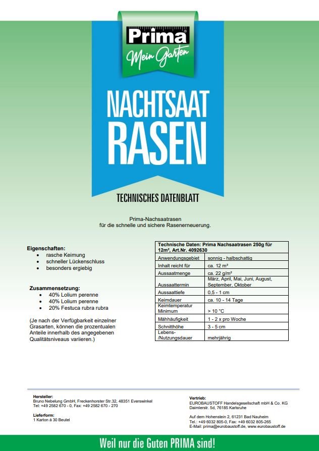 Shop » Detailansicht Prima Nachsaatrasen - verschiedene Ausführungen