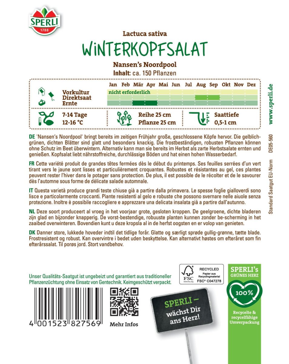 Gemüsesamen - Robuster Wintersalat für frühe Ernten - Art.Nr.: 82756 Artikel-Nr.: 86001062 Hersteller: SPERLI GmbH