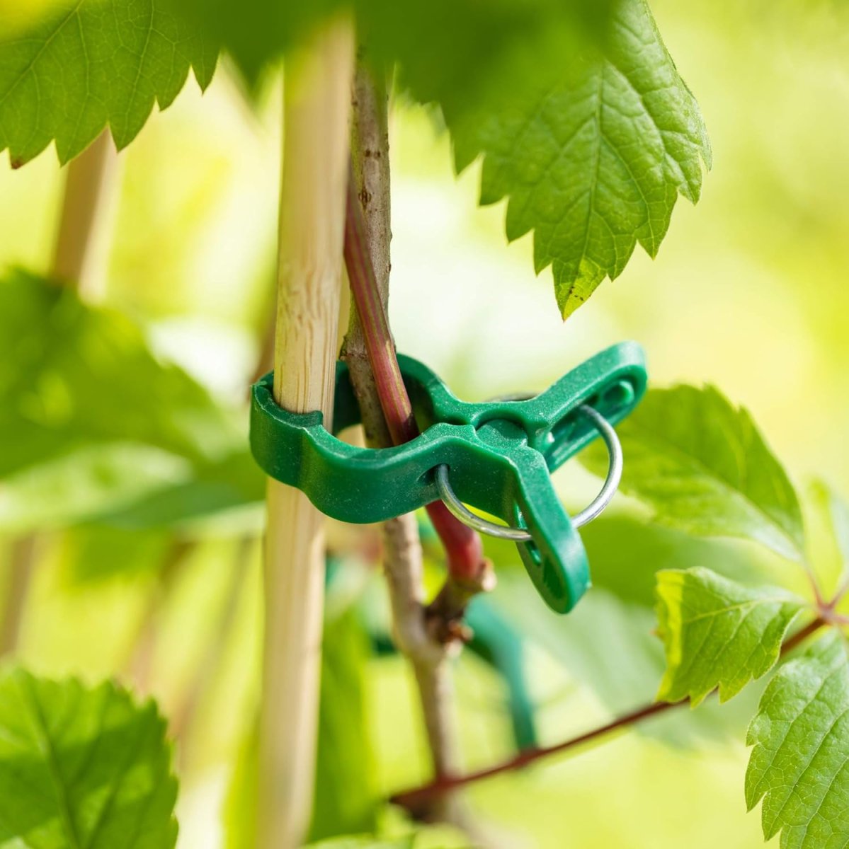 Die Befestigungsklammern geben jungen und zarte Pflanzen Halt. Sie werden einfach am Pflanzstab, Rankgitter oder Ranknetz befestigt. Empfindliche Stängel erhalten so die nötige Unterstützung beim Wachsen. Optimal für Rankstäbe mit einem Durchmesser bis zu 14 mm.