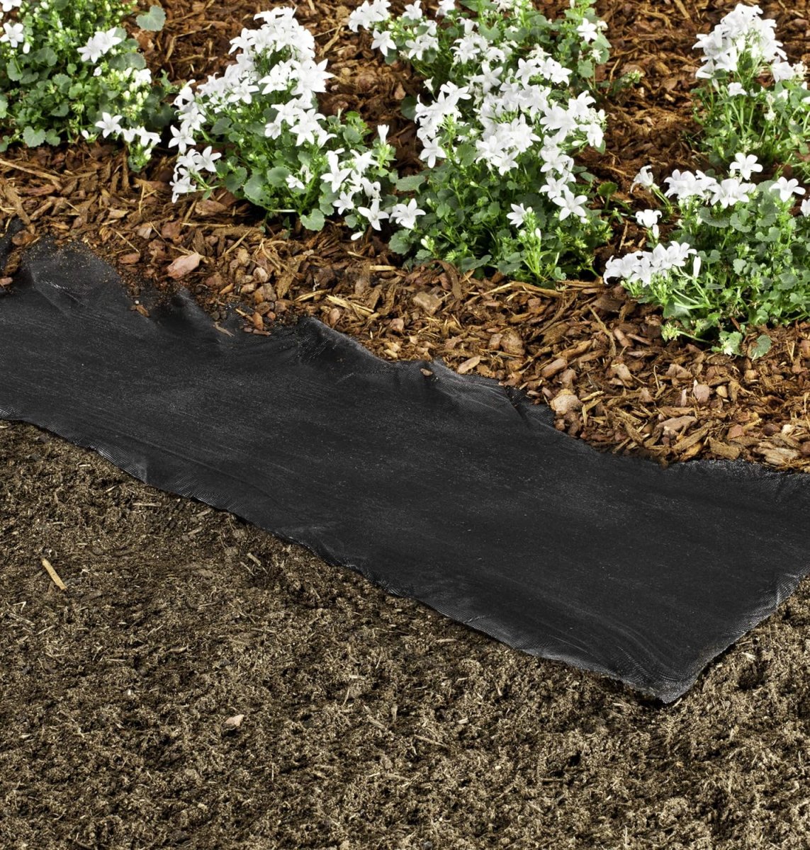 Die Folie hält den Boden feucht und lässt ihn atmen. Sie verstärkt die unkrautverhindernde Wirkung von Rindenmulch - unsichtbar und ohne Nachteile für Umwelt und Boden.