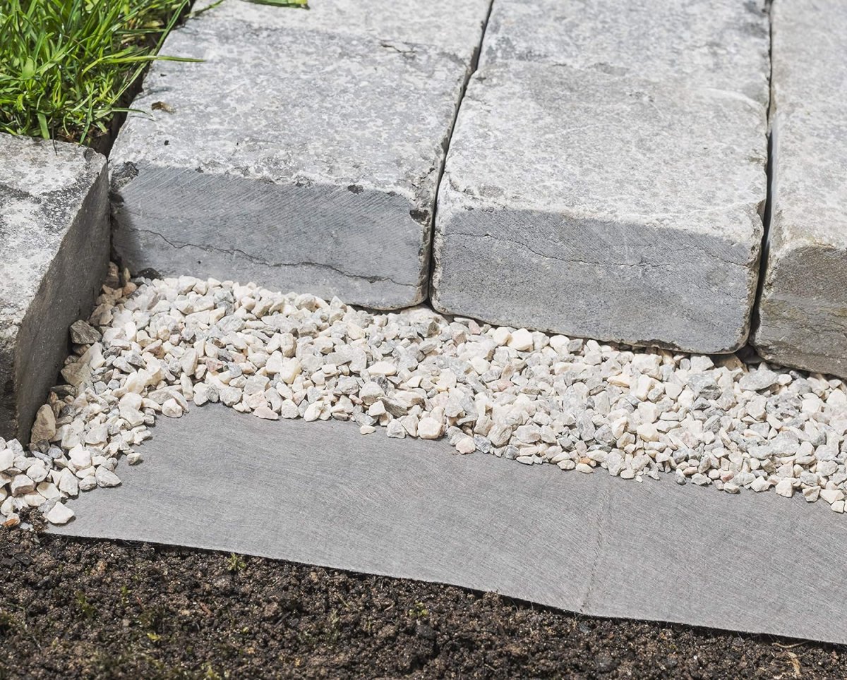 Das hochwertige und extra robuste Vlies dient als Trennung zwischen unterschiedlichen Schichten (Sand, Kies, etc.). Das Risiko von Frostschäden oder das Einsinken von Platten durch Unterspülung wird stark gemindert. Für Terrassen, Gehwege oder Pflasterungen ideal geeignet.