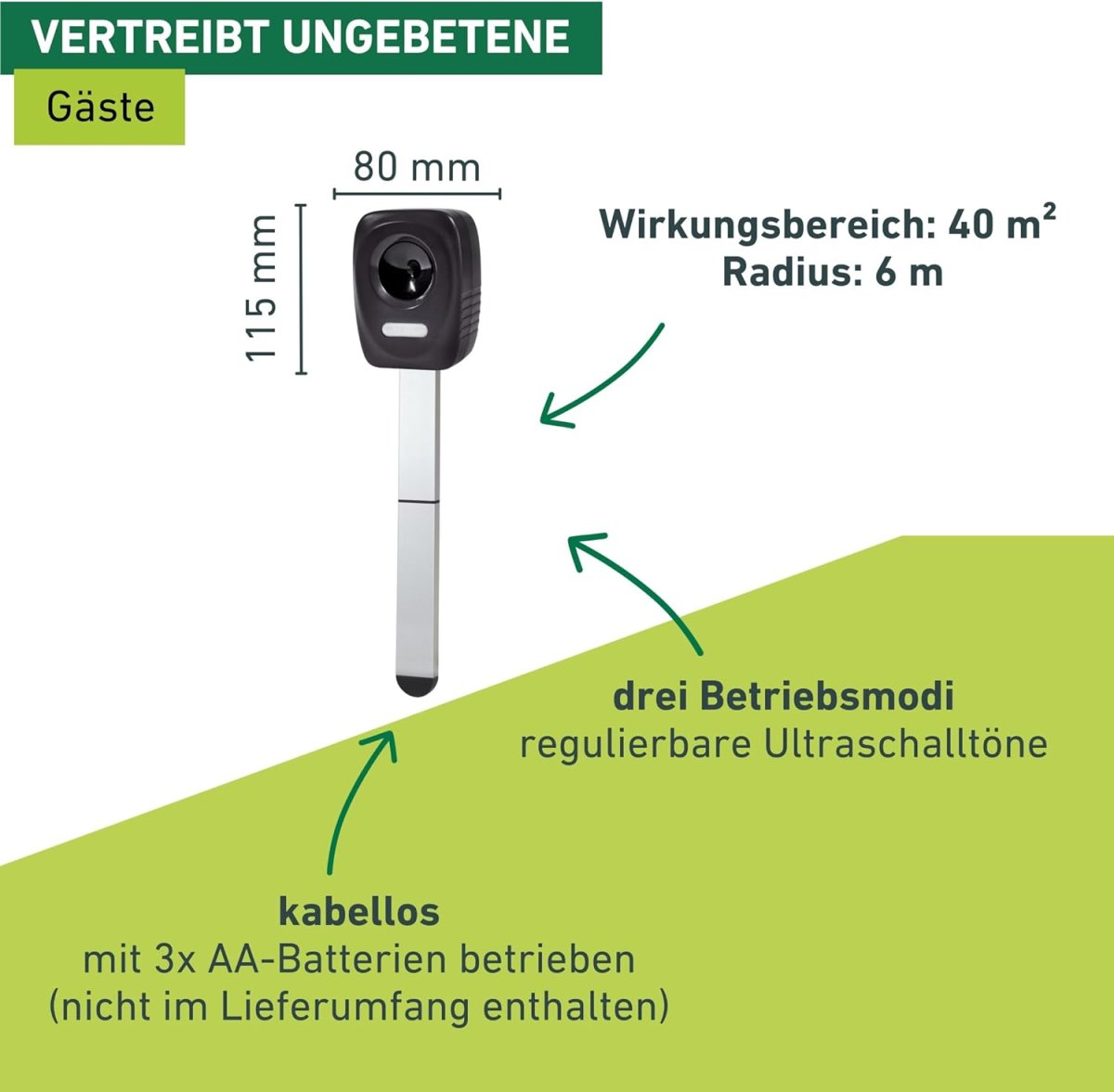 - WIRKSAM DURCH ULTRASCHALLTÖNE – Kommt ganz ohne Gift und Chemie aus und ist deshalb besonders umweltfreundlich