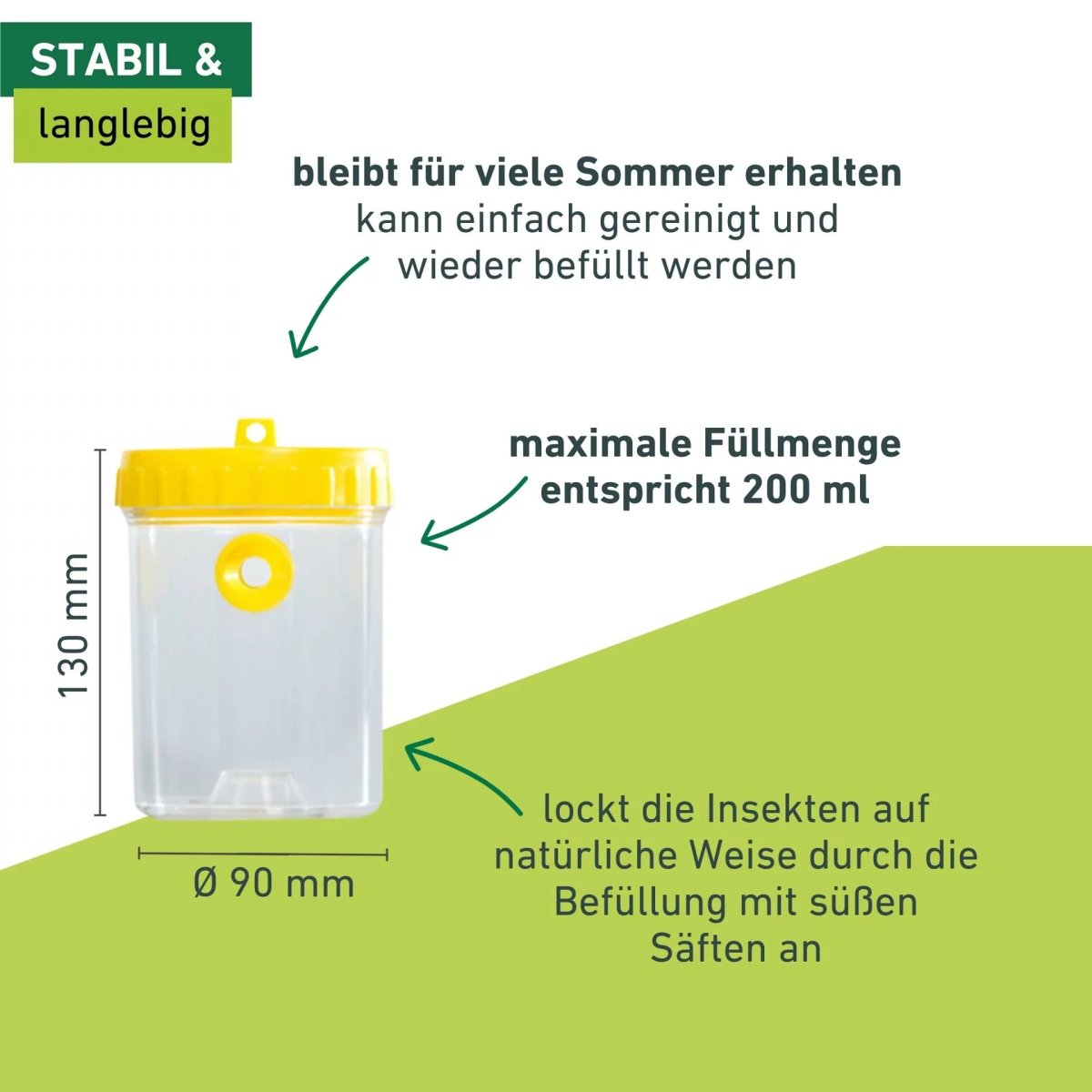 - ROBUST UND LANGLEBIG – Die Kunststofffalle kann einfach gereinigt und wieder befüllt werden, so bleibt sie Ihnen über viele Sommer erhalten