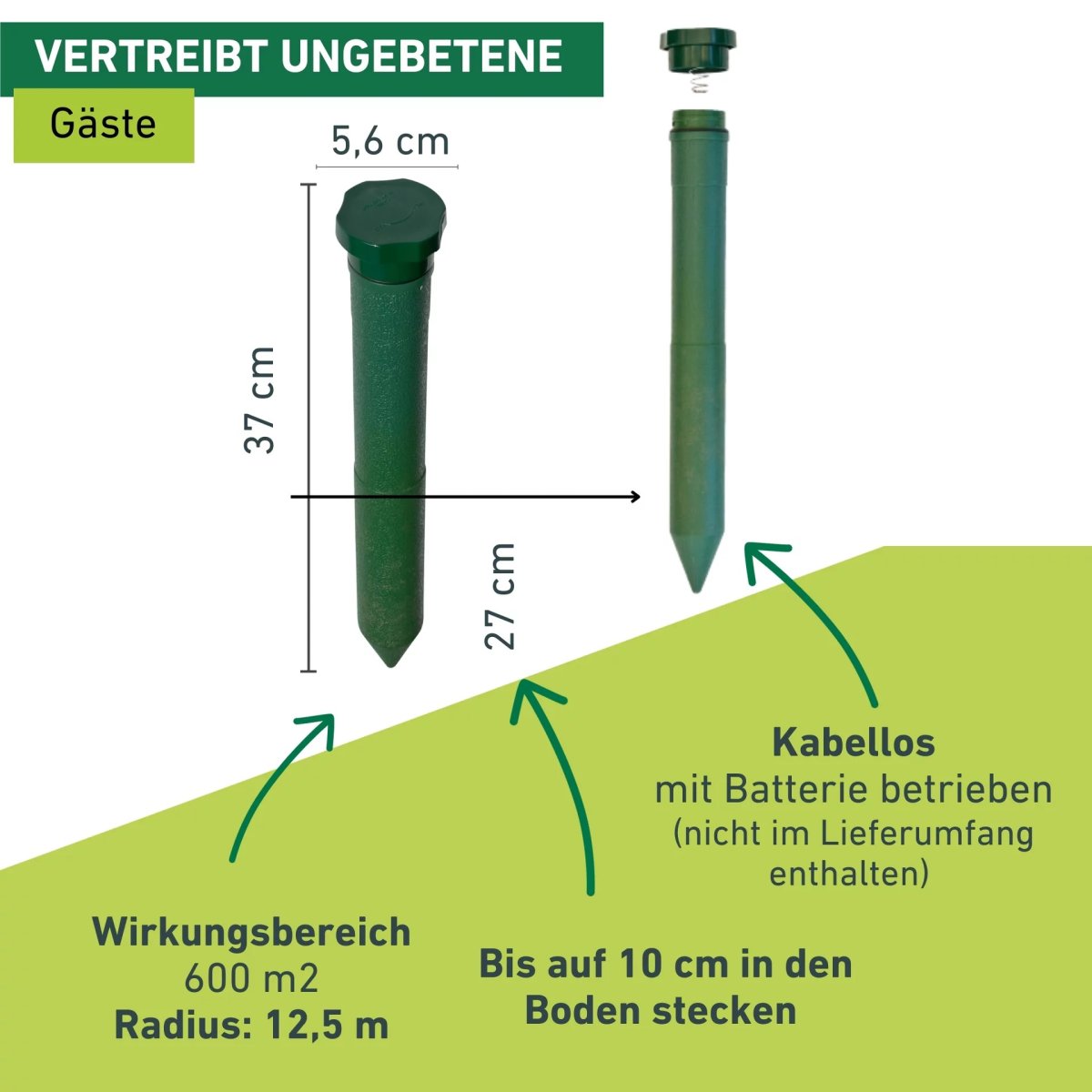 - EINFACHE ANWENDUNG – Der Vertreiber wird am gewünschten Einsatzort einfach in den Boden gesteckt