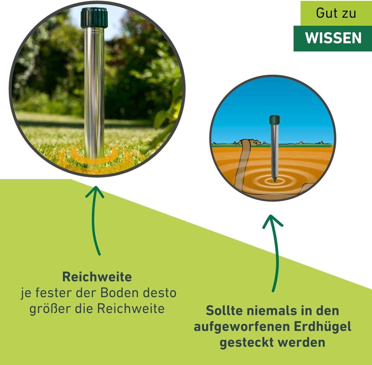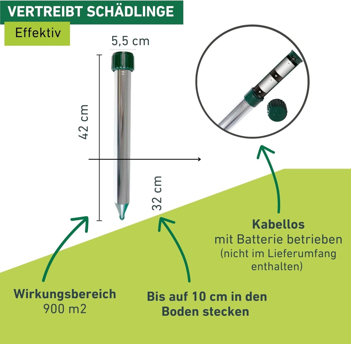- EINFACHE ANWENDUNG – Der Vertreiber wird am gewünschten Einsatzort einfach in den Boden gesteckt