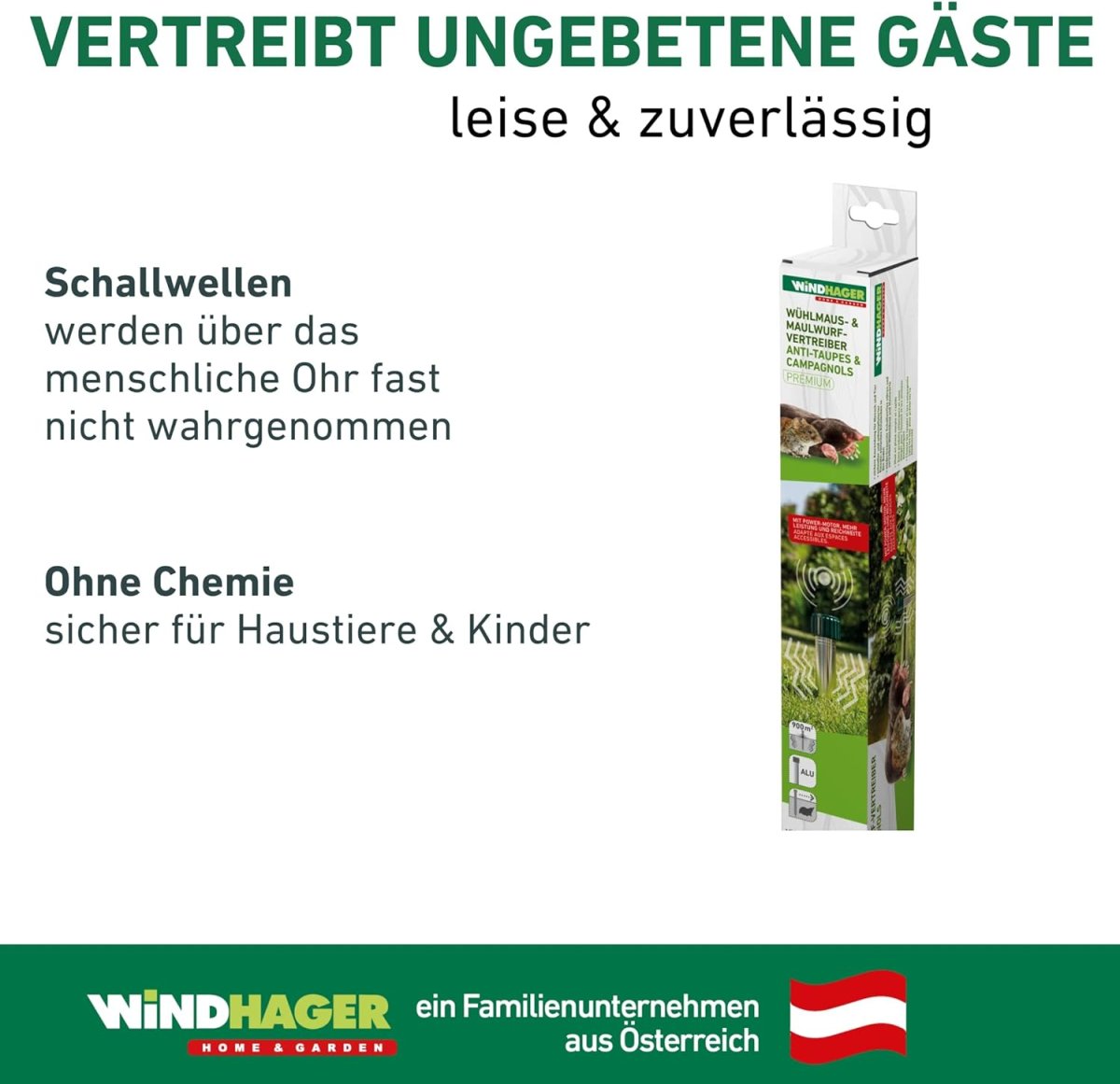 Shop » Detailansicht Wühlmaus- & Maulwurfvertreiber PREMIUM - Wirkungsbereich ca. 900m²