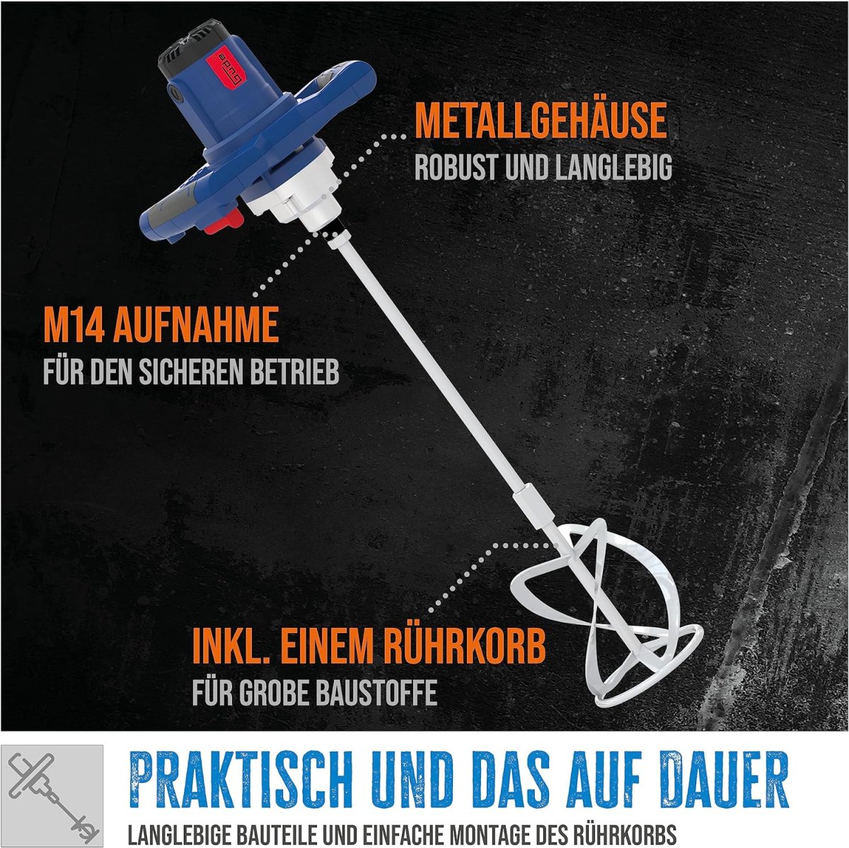 - Lieferumfang: Motoreinheit, Rührkorb Baustoffe grob.