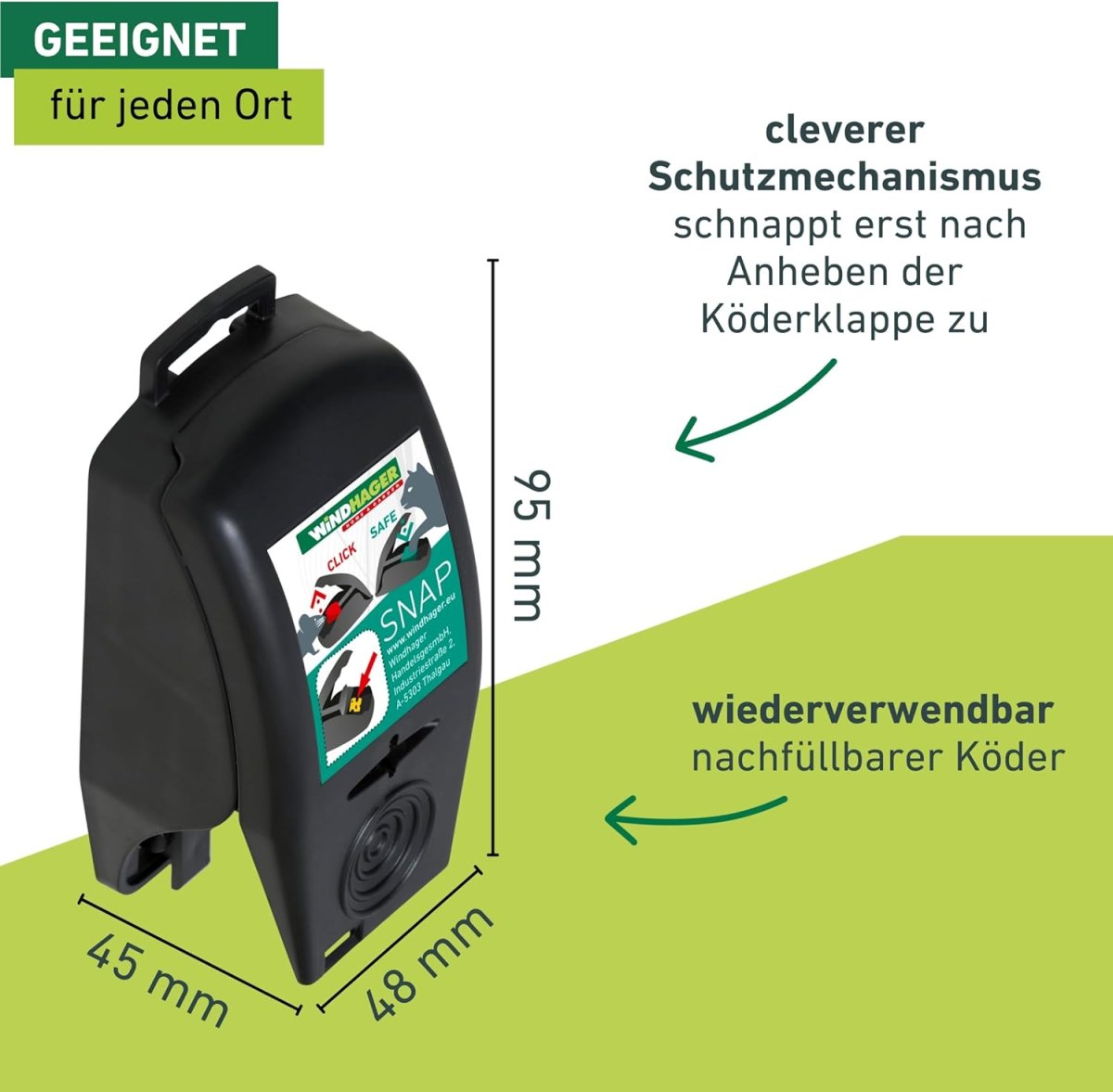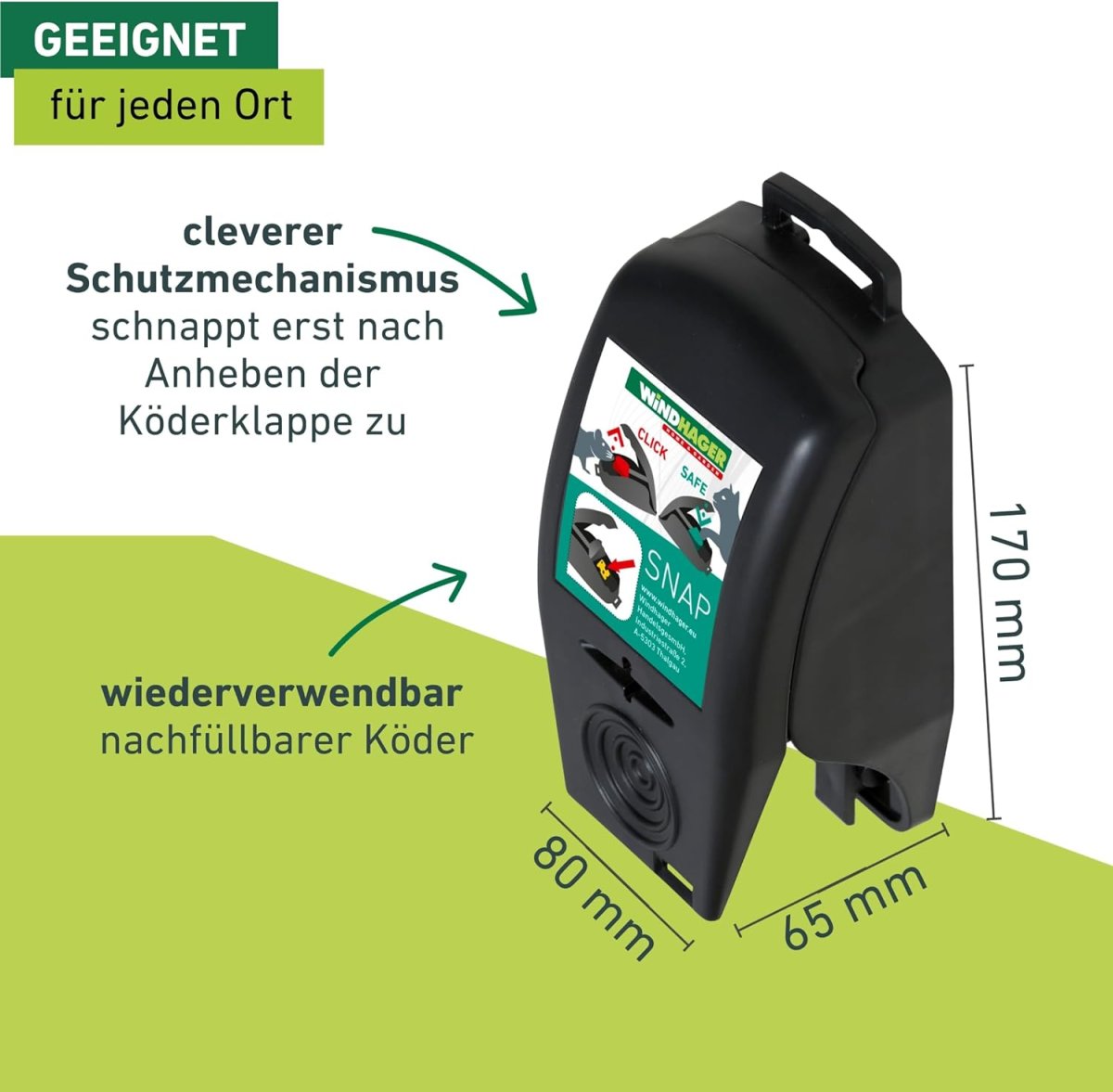 Clevere Mause- oder Rattenfalle mit Schutzmechanismus - Art.Nr.: 05061/ 05062/ 05065 Artikel-Nr.: 86000887 Hersteller: Windhager Handelsgesellschaft m.b.H.