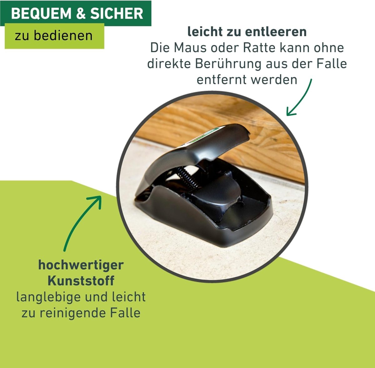- HOCHWERTIGER KUNSTSTOFF – Langlebige und leicht zu reinigende Falle