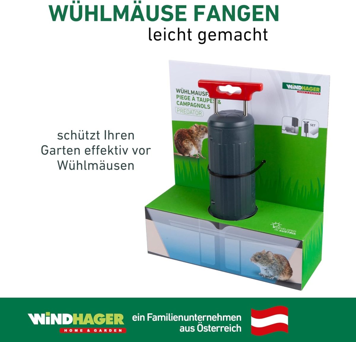 - SCHLUSS MIT WÜHLMÄUSEN – Mit der Wühlmausfalle PREDATOR von Windhager fangen Sie Wühlmäuse effizient und unkompliziert