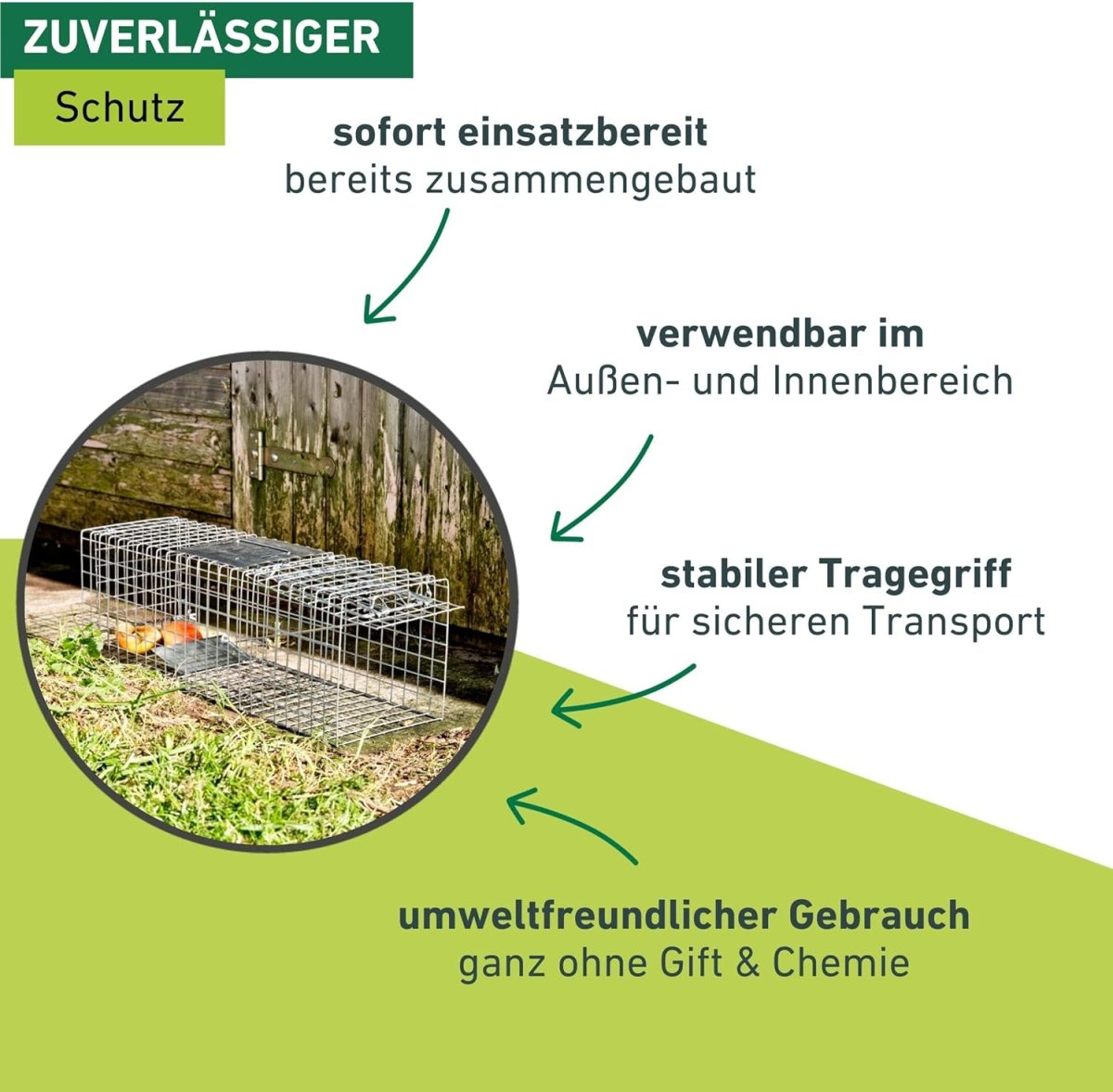 - TIERFREUNDLICHER LEBENDFANG – Die Tiere werden nicht verletzt und können an einer geeigneten Stelle wieder freigelassen werden