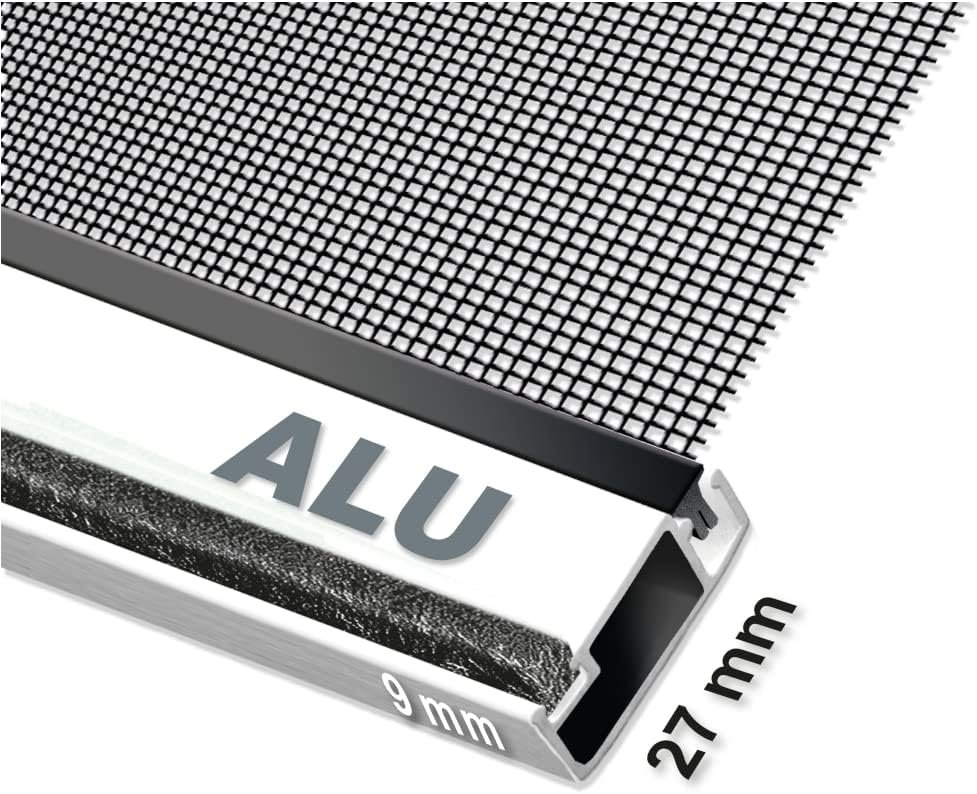 Die flachen, aber breiten Aluminiumprofile sind stabil und haben eine matt-sandierte, moderne Oberfläche. Allgemein hat das Insektenschutzfenster PLUS eine geringe Einbautiefe von 11 mm und lässt sich problemlos hinter die meisten Rolläden einbauen. Eine individuelle Größenanpassung der Aluminiumprofile ist durch Zurechtsägen mit zusätzlichem Werkzeug möglich.