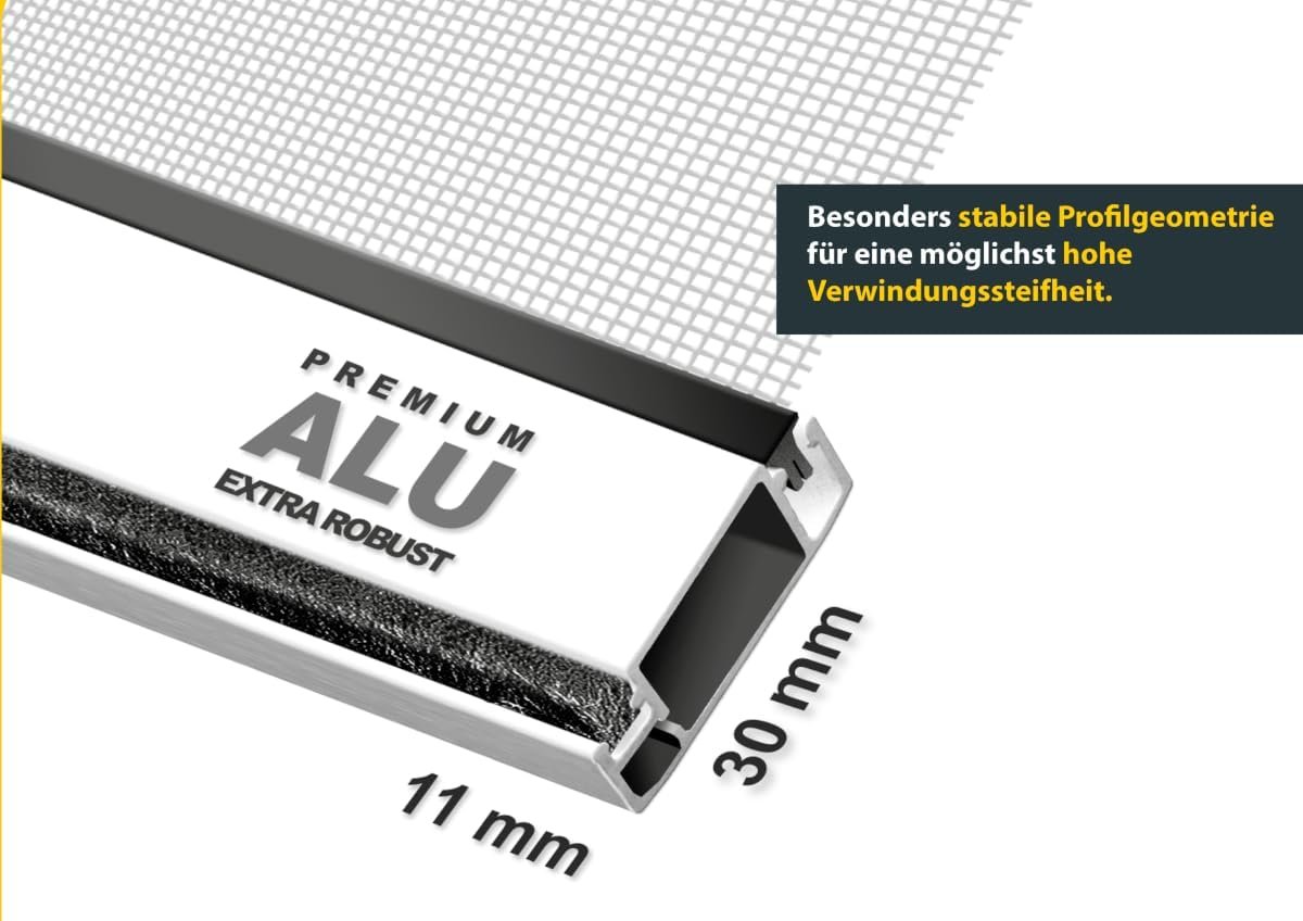 Die PREMIUM Insektenschutz-Lösungen mit langlebigem Klarsicht-Fiberglas-Gewebe im stabilen Aluminium-Rahmen, halten Wohnräume zuverlässig frei von Insekten wie Fliegen, Mücken, Wespen und Kriechtieren. Neben der hervorragenden Durchsicht ermöglicht das Premium Gewebe eine bis zu 30% bessere Luftzirkulation sowie eine bis zu 40% bessere Durchsicht im Vergleich zu herkömmlichem Fiberglas-Gewebe. Zudem ist das Gewebe UV-stabil, reißfest und abwaschbar. Eine umlaufende Bürstendichtung sorgt für zusätzlichen Schutz gegen Kriechtiere.