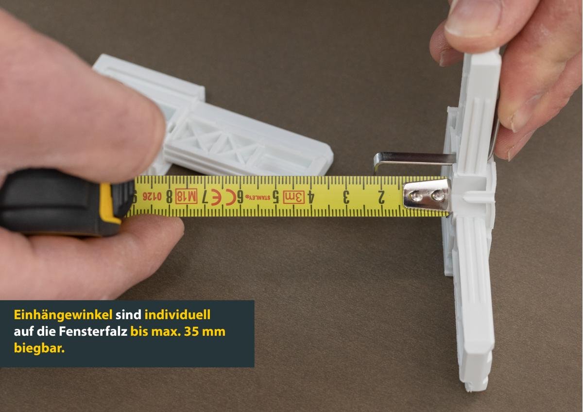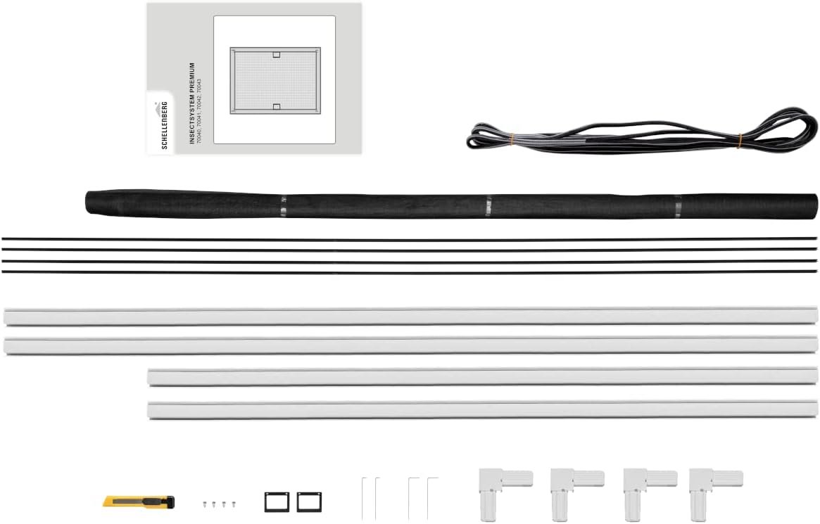 Dank des praktischen Komplett-Sets sind Anwendung und Anbringung des Fensters ganz einfach und bequem. Nachdem die Aluminium-Profile auf das benötigte Maß gekürzt wurden, werden die Rahmenelemente mit den beiliegenden Eckverbindern verbunden. Das KLARSICHT-Fiberglas-Gewebe wird anschließend mit dem Schlagkeder auf dem Rahmen fixiert und überstehendes Gewebe mit dem beigefügten Cutter-Messer entfernt. Ganz ohne Bohren oder Schrauben kann der Rahmen mittels der Edelstahl-Einhängefedern ein- und wieder ausgehängt werden. Für eine nahezu lückenlose Abdichtung des Fensters verfügt der PREMIUM-Alurahmen zudem über eine optimierte Profilgeometrie, die einer ungewollten Profilbiegung entgegengewirkt.